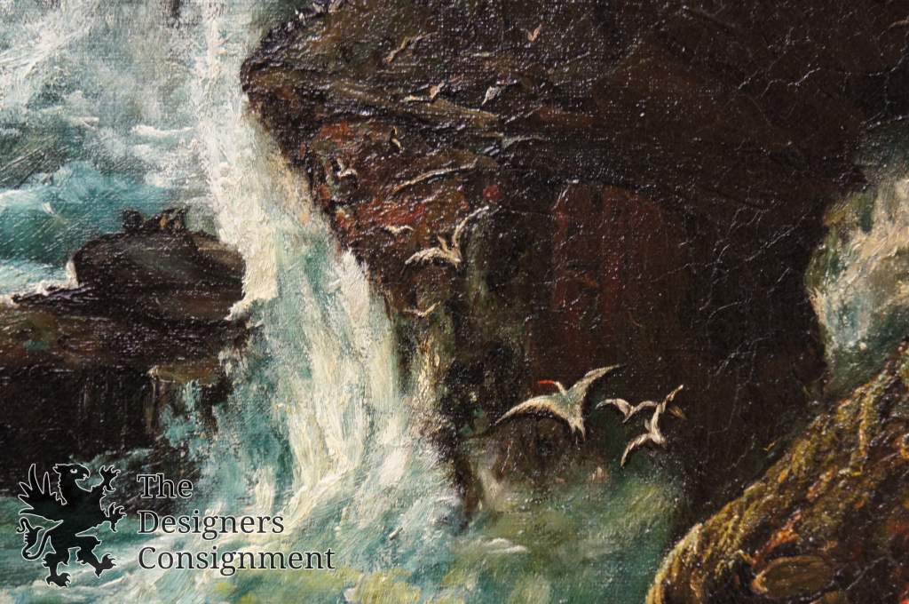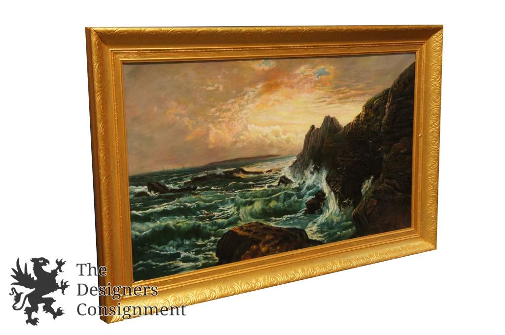 Here we have an unsigned George J Bleich Seascape. George is active/ lived in California. Known for Seascapes from his travels around the world. He has a studio on the Monterey Penisula. Framed in solid wood and painted gold. A great addition to any collection.