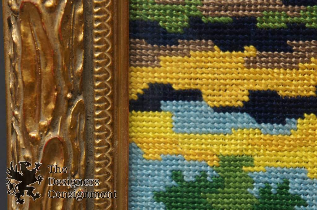 Hand woven needlepoint featuring Moses with 10 commandments. Neatly framed in gold.