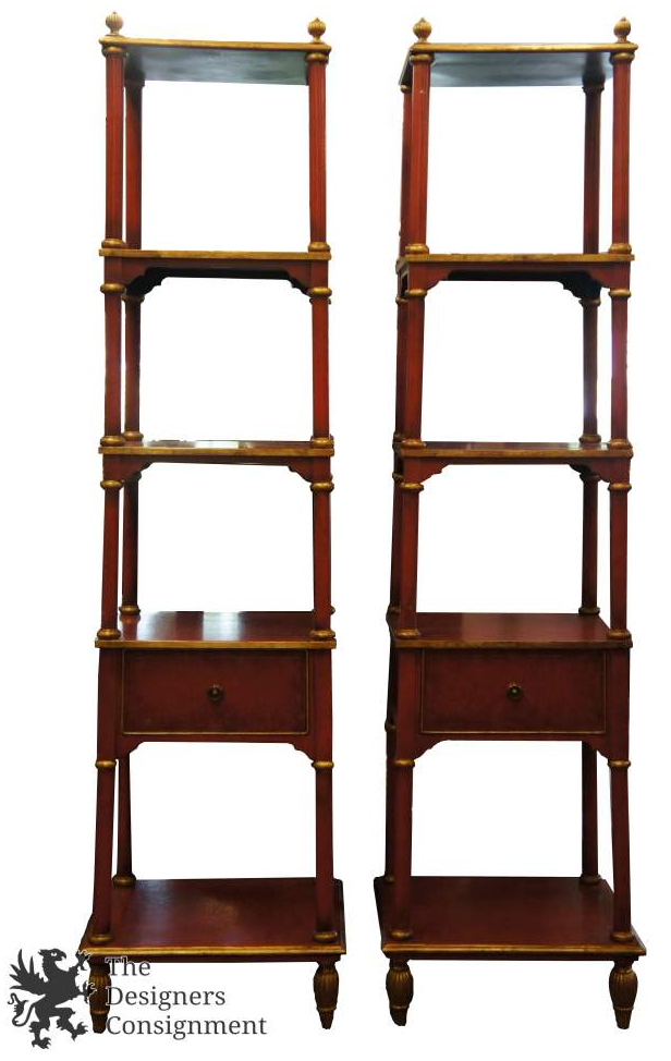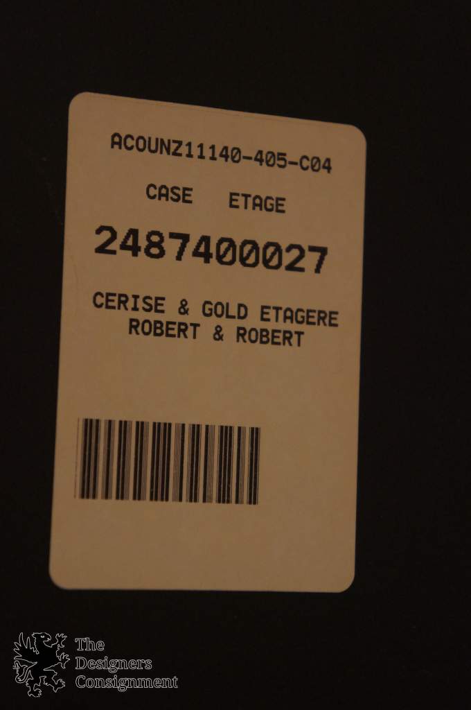 Robert & Robert a collaboration by Randy and Skip Culler. Cerise & Gold Etageres. Leathery feel with great character. The perfect addition to any room.