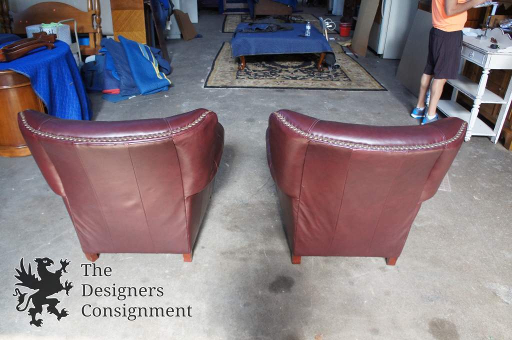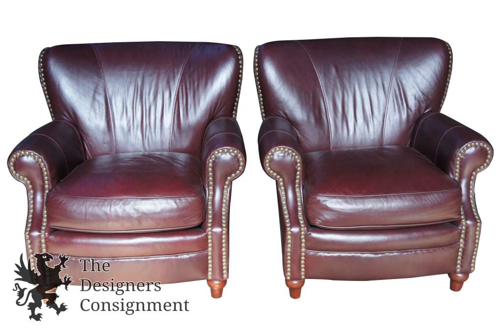 2 Studded Oxblood Leather Club Chairs Pair Distinctions Klaussner Furniture 2001