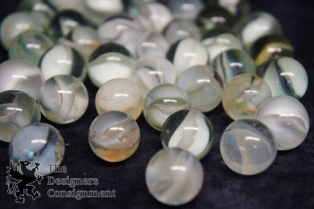 40 Vintage Machine Made White Cats Eye Banana Core Glass Marbles Toys