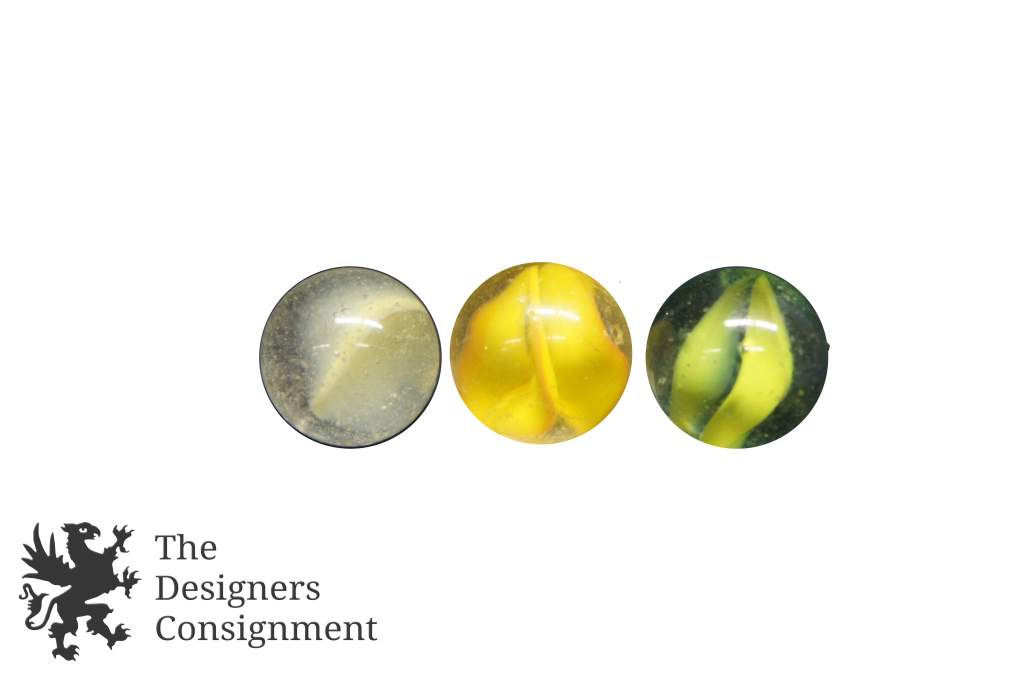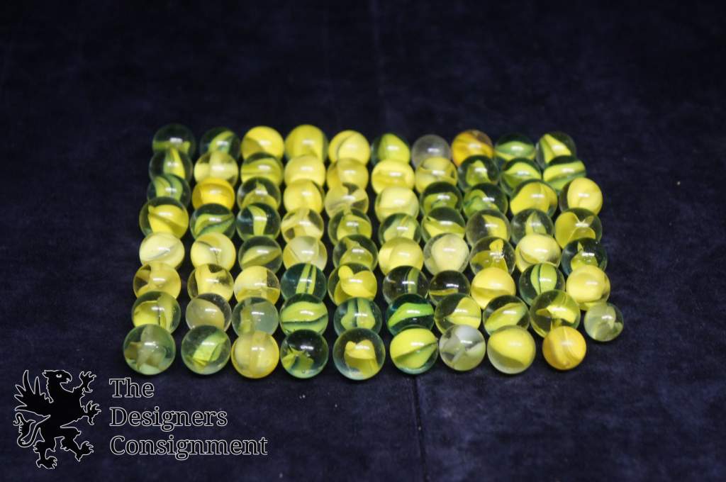 79 Vintage Machine Made Yellow Cats Eye Banana Core Glass Marbles Toys