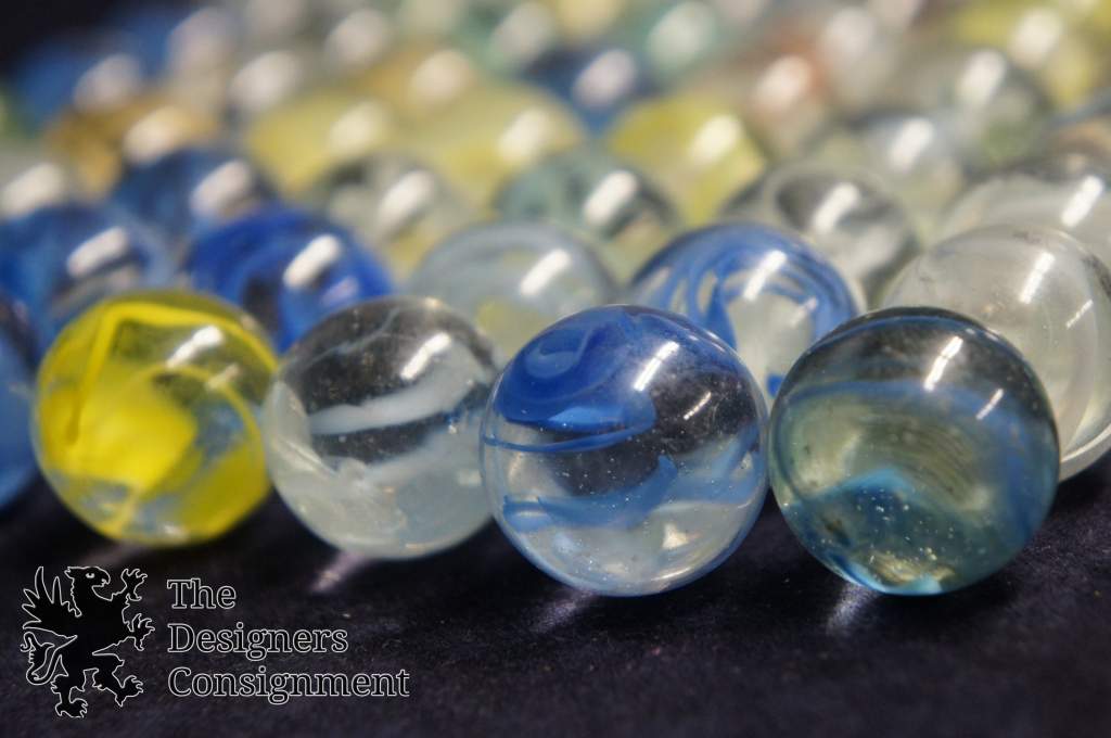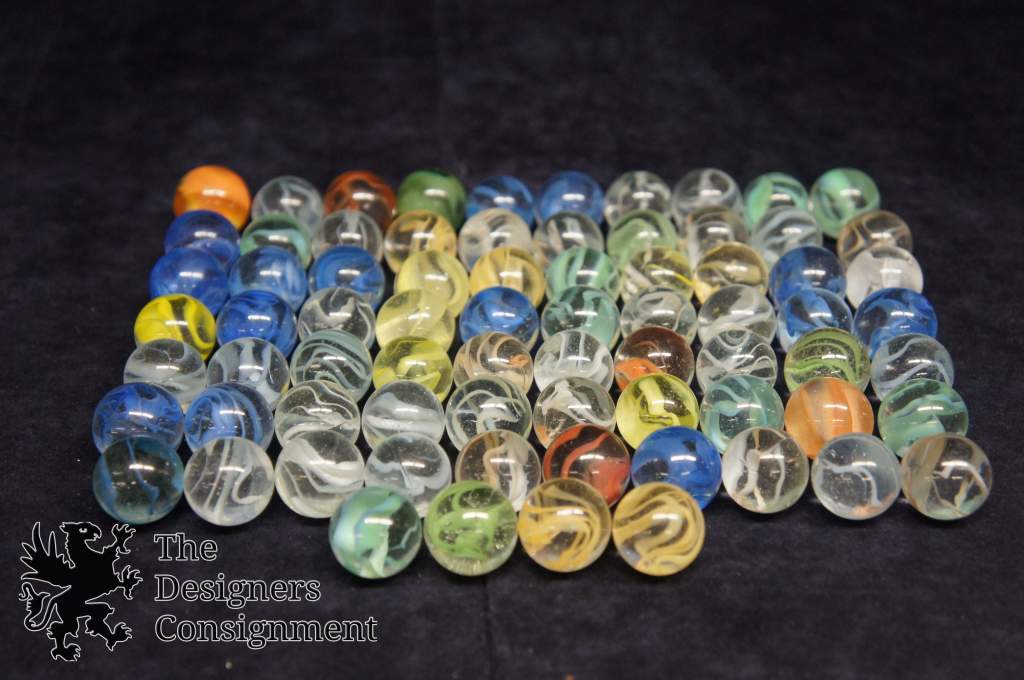 74 Vtg 15/16" Machine Made String Ribbon Swirl Clear Glass Marbles Toys Shooters 232735608281