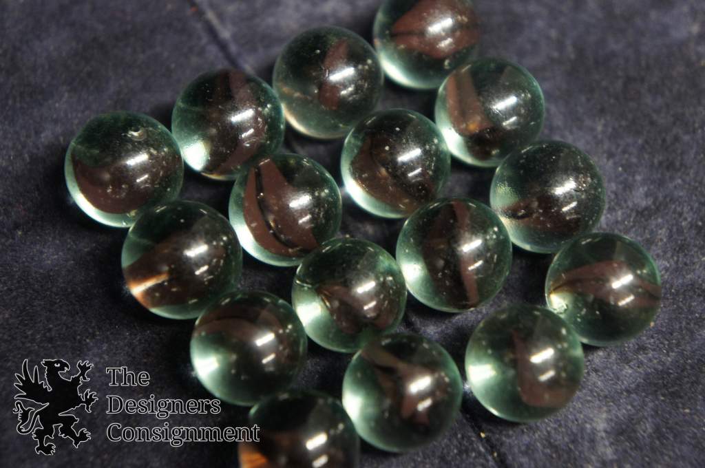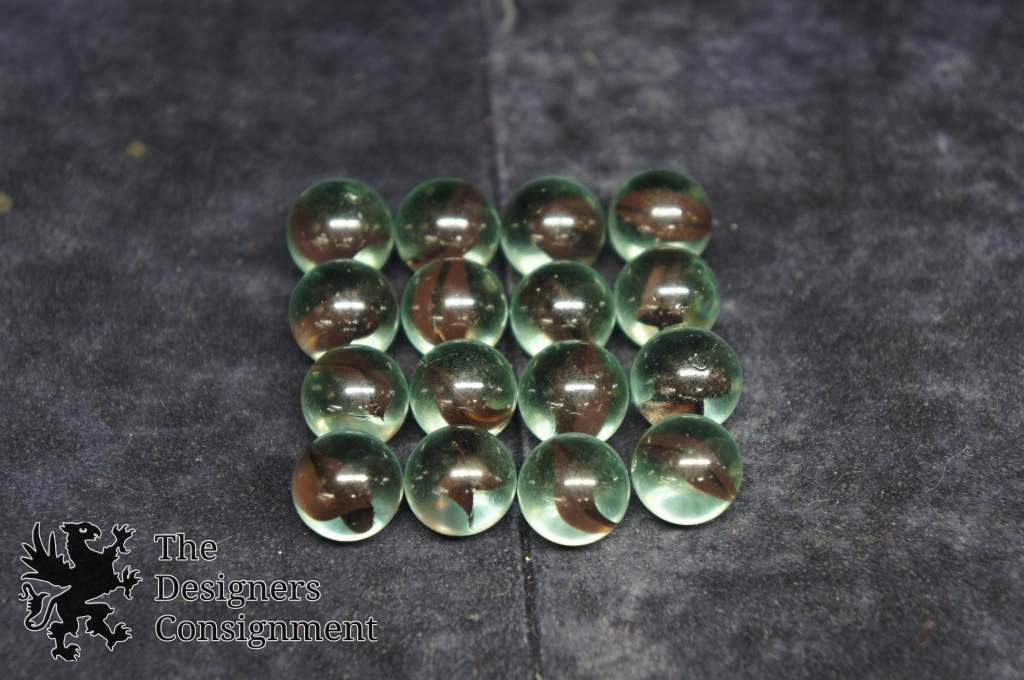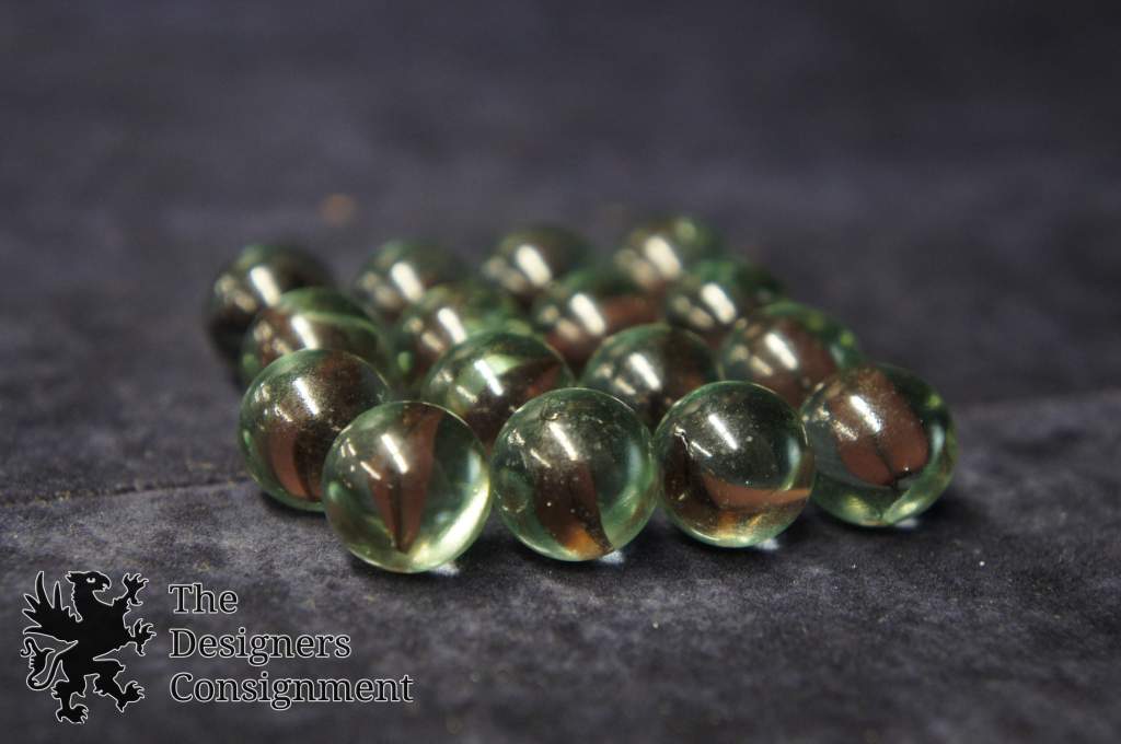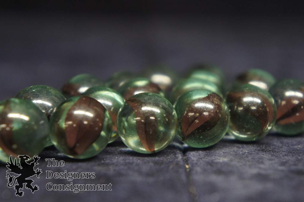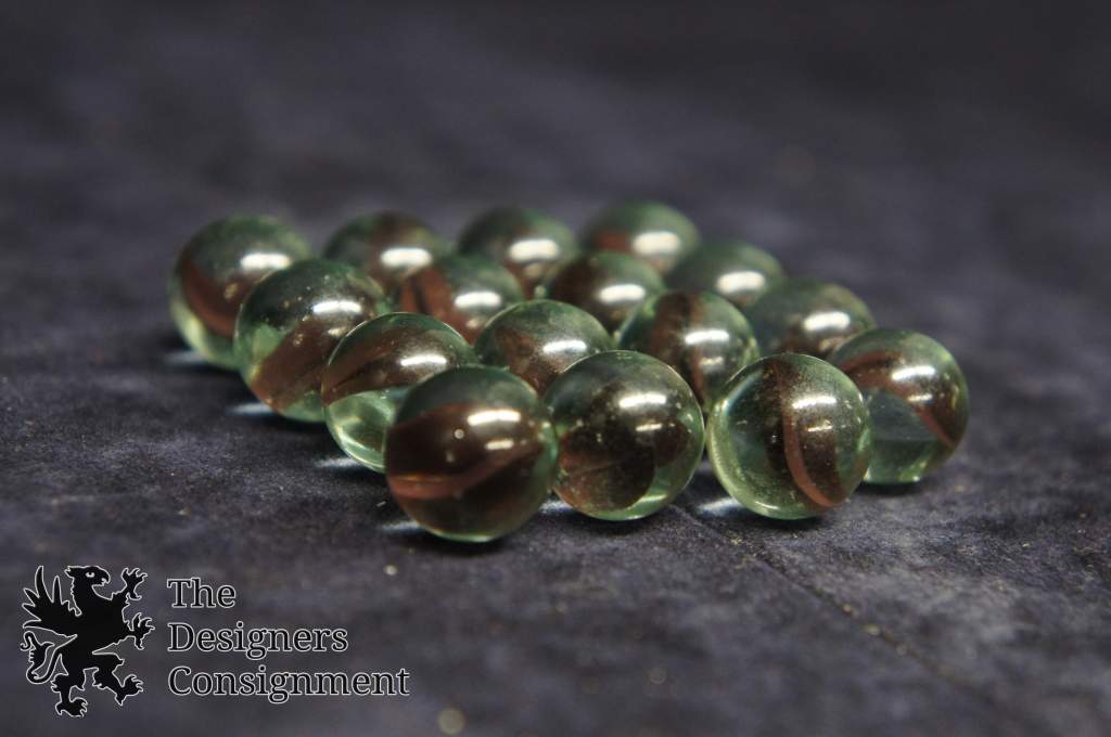 16 Vintage Machine Made Brown Cats Eye Banana Core Green Glass Marbles Toys