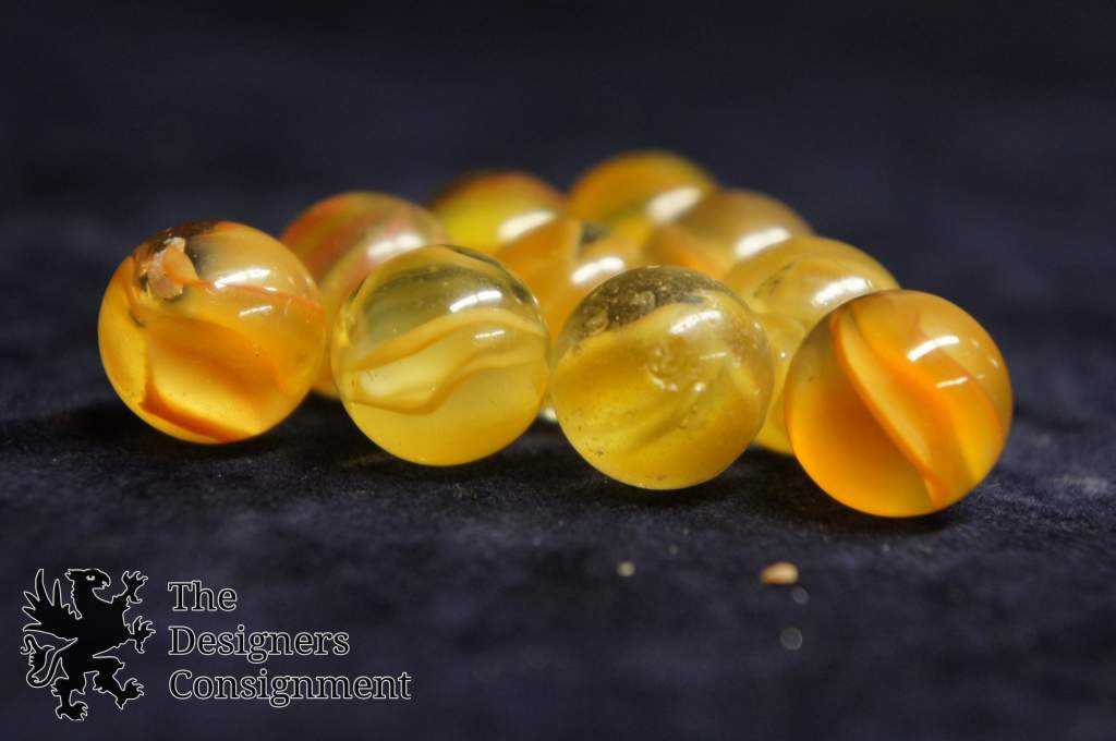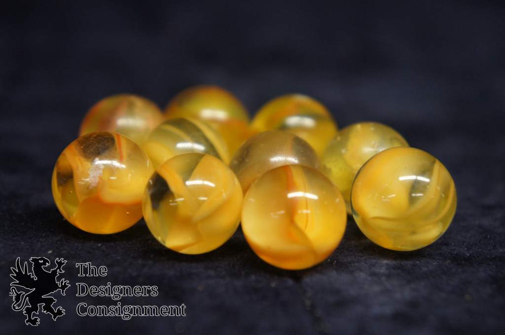 10 Vintage Machine Made Golden Yellow Cats Eye Banana Core Marbles Toys 352330553667