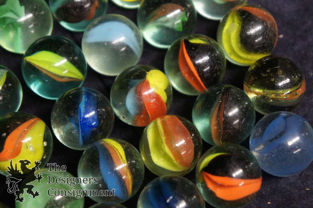 35 Vintage Tricolor Cats Eye Banana Core Glass Marbles Shooter Oversized Toys