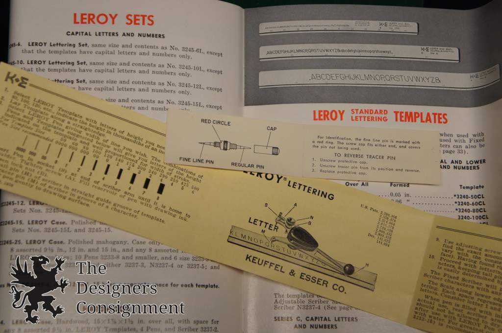 Vtg Keuffel & Esser Co Leroy Basic Lettering & Symbol Set Equipment in Wood Case