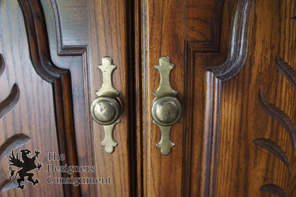 Vintage 1980s tallboy dresser. Made from carved oak.