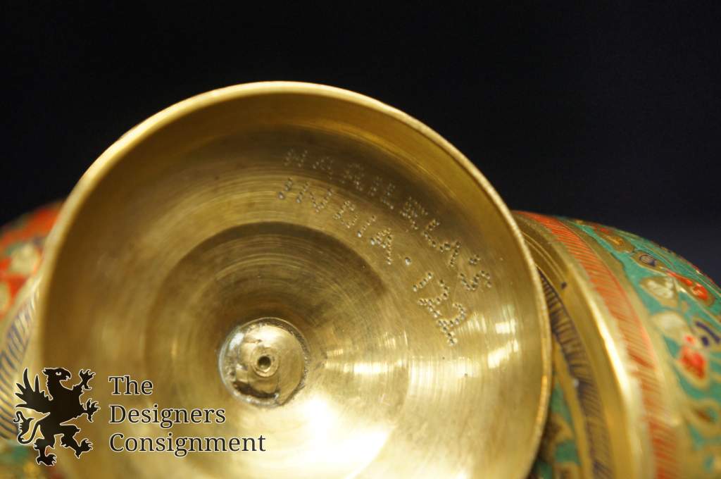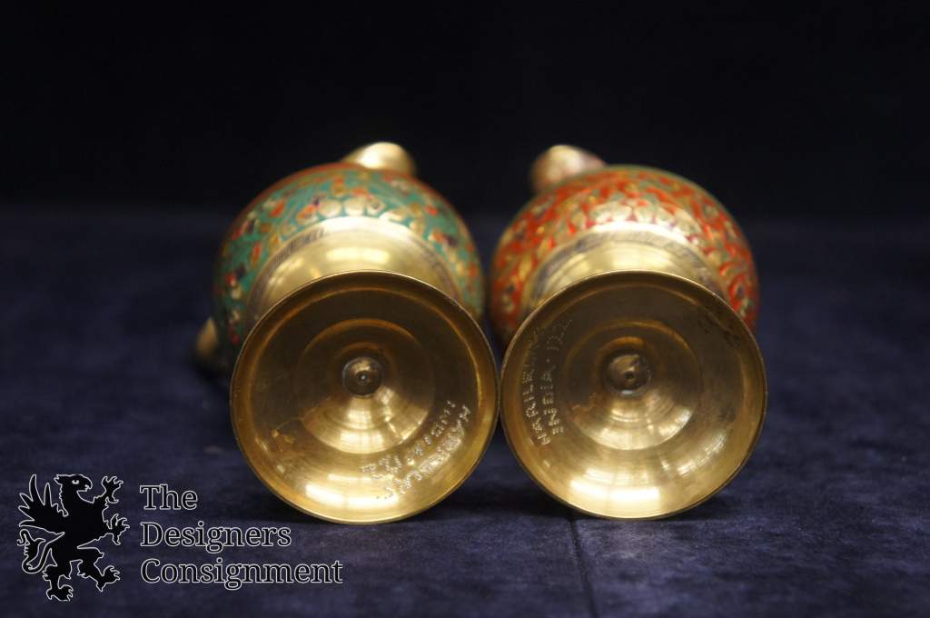2 Colorful India Brass Pitcher Urns Vases Embossed Floral Design Harilela's 122