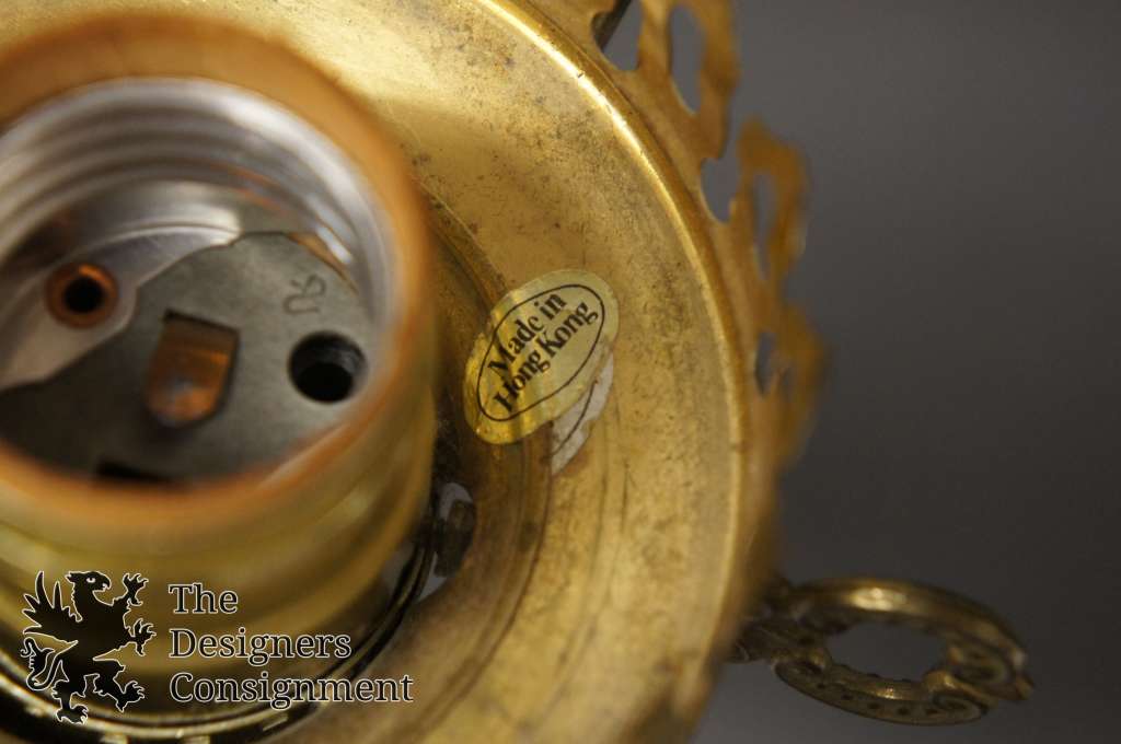 Victorian Hurricane lantern style lamp. Brass with milk glass shades. Handled along the top for ease of movement.