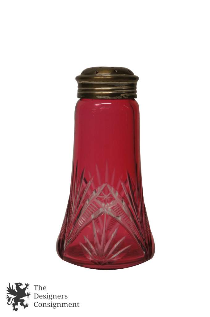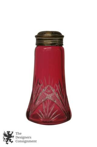 Vintage Ruby Glass Pink Sugar Salt Seasoning Shaker with Brass Tone Top Cap 5.5