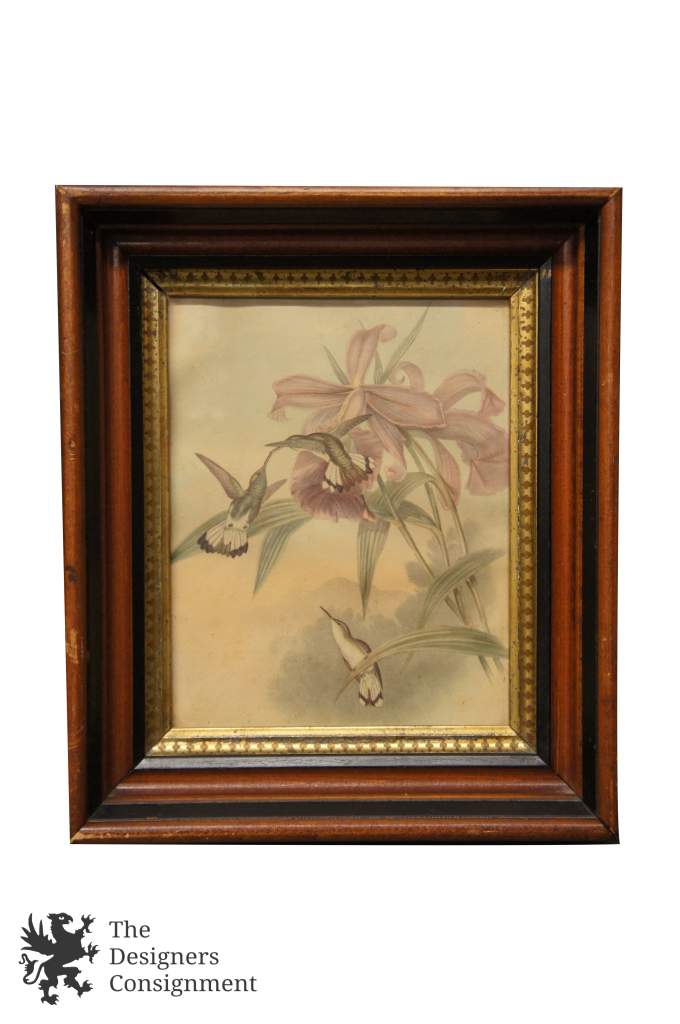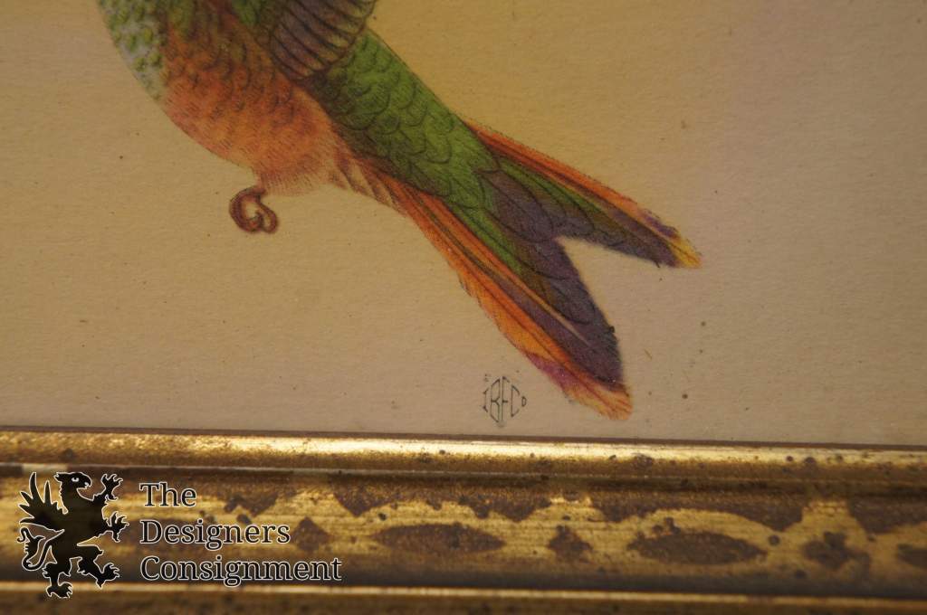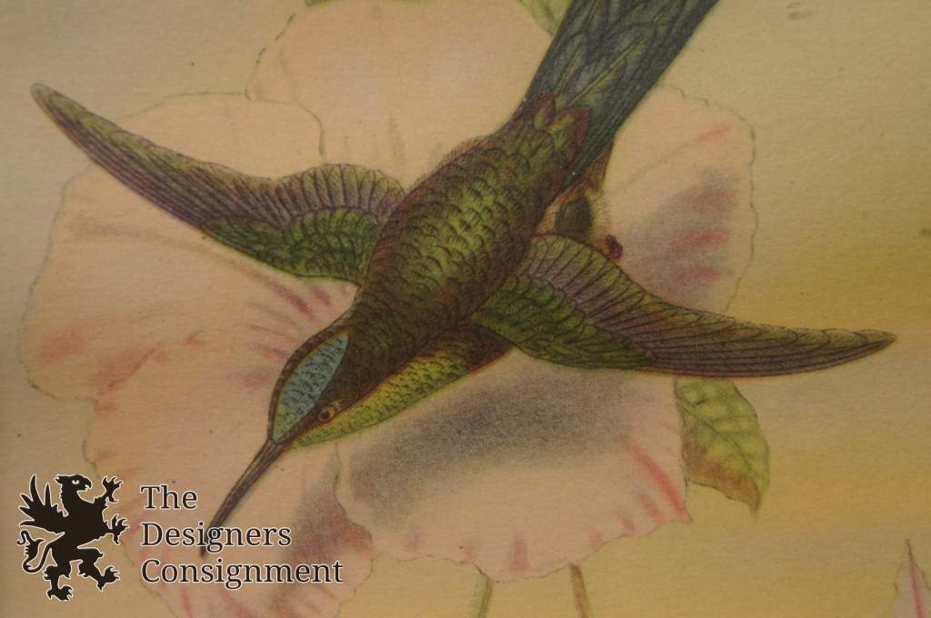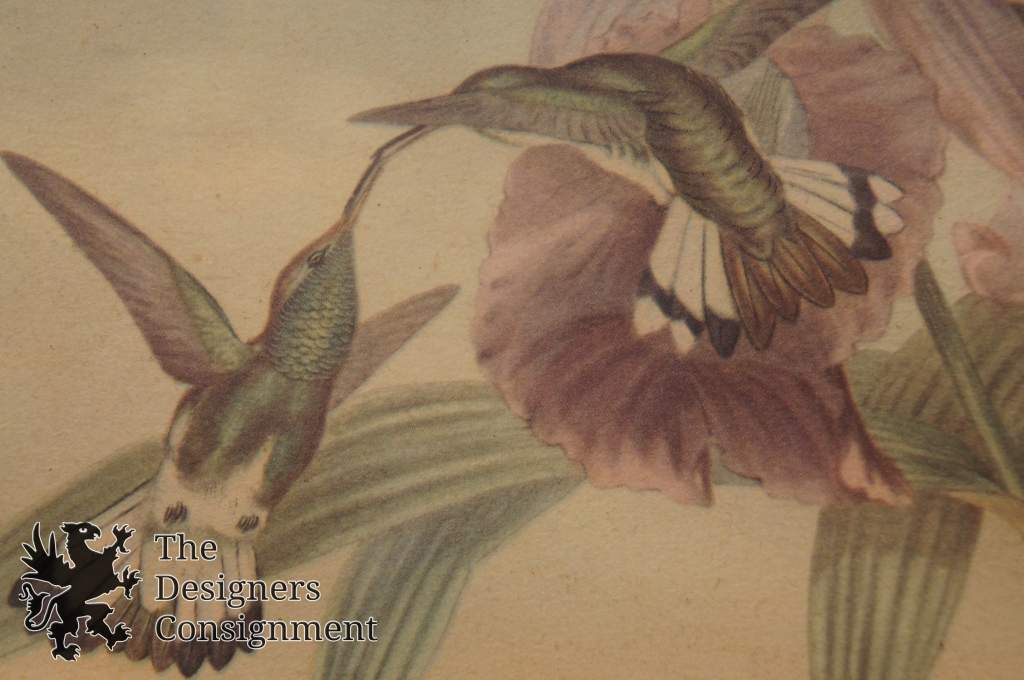 2 IBF Co Framed Lithograph Hummingbirds and Flowers Floral Pair Mid Century 14