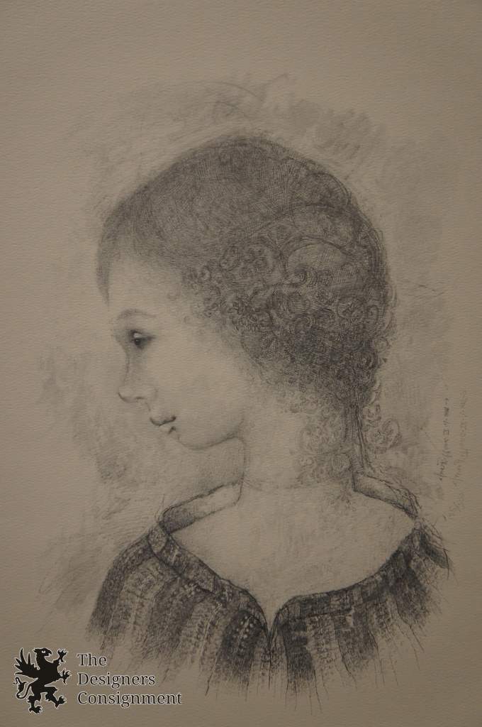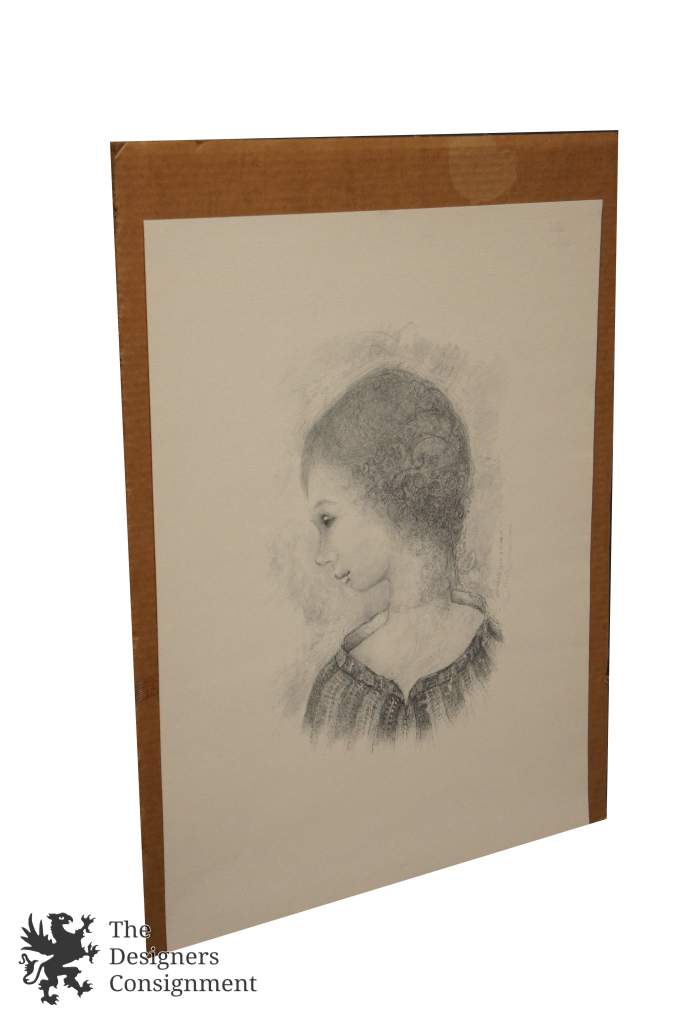 Elmer Ruffone Signed Lithograph Print 125/300 Portrait of Girl in Striped Dress