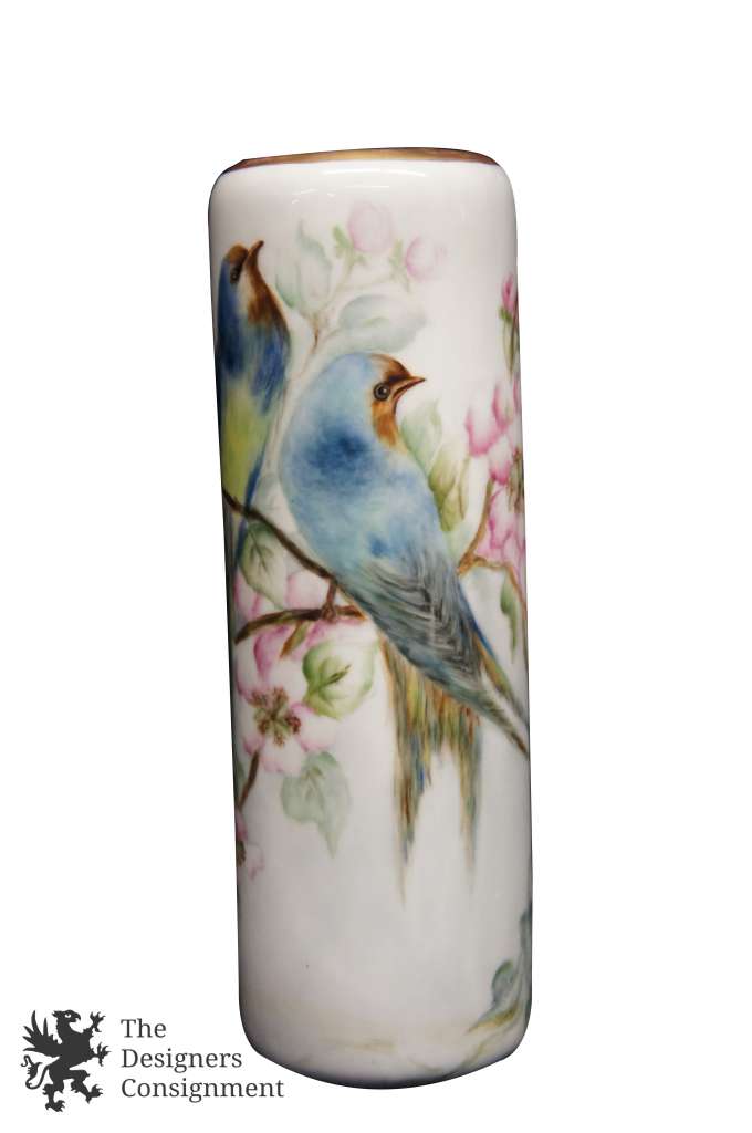 Rare Hand Painted PH Leonard Vienna Austria Floral Vase Gilded Birds Blossom 10