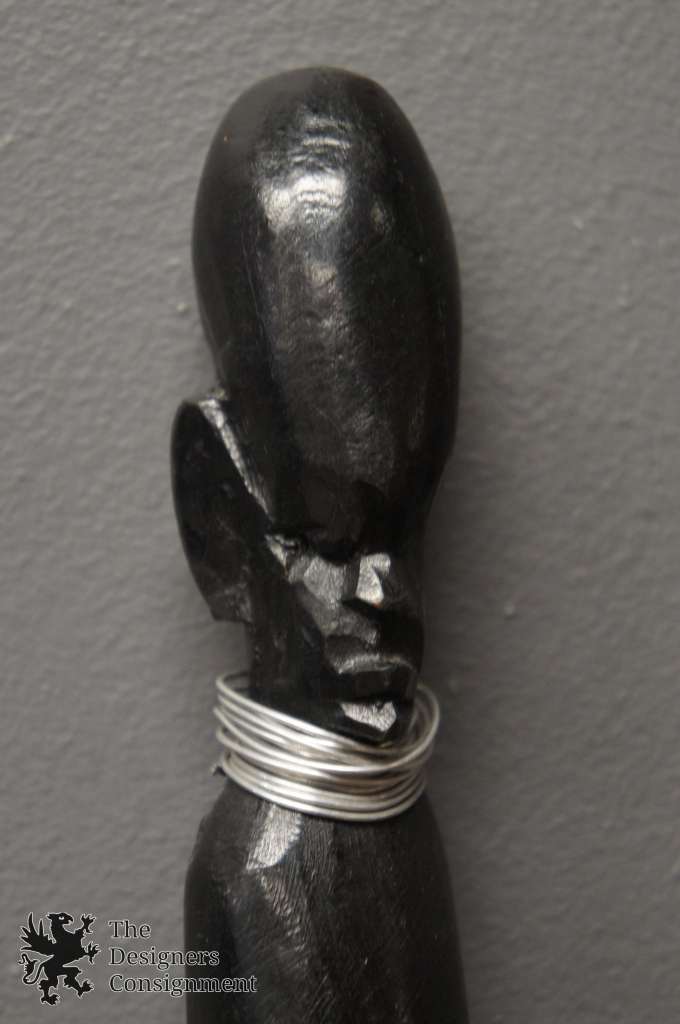 Vintage Ebony Carved African Figural Knob Spiral Wooden Cane Walking Stick