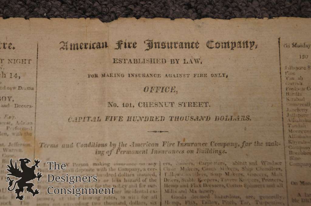 Signed Antique Newspaper The Democratic Press March 14, 1812 American USA