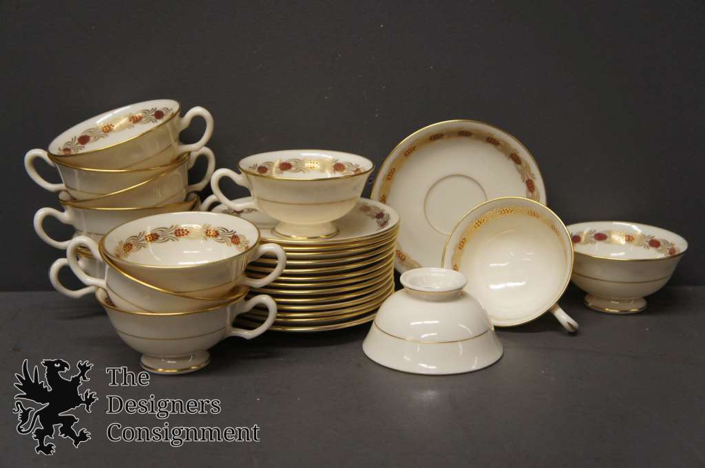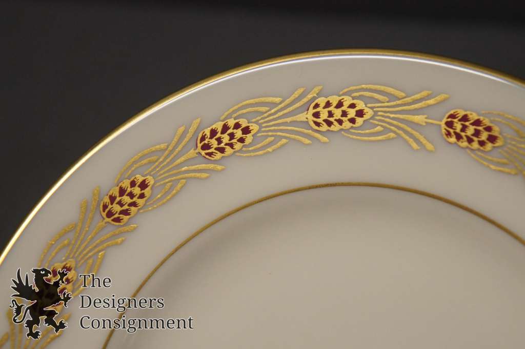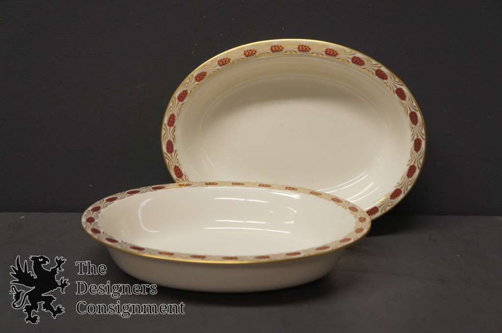 Vintage 93 Pc Lenox USA Fine China Set Pinehurst Maroon Gilded Pine Cones