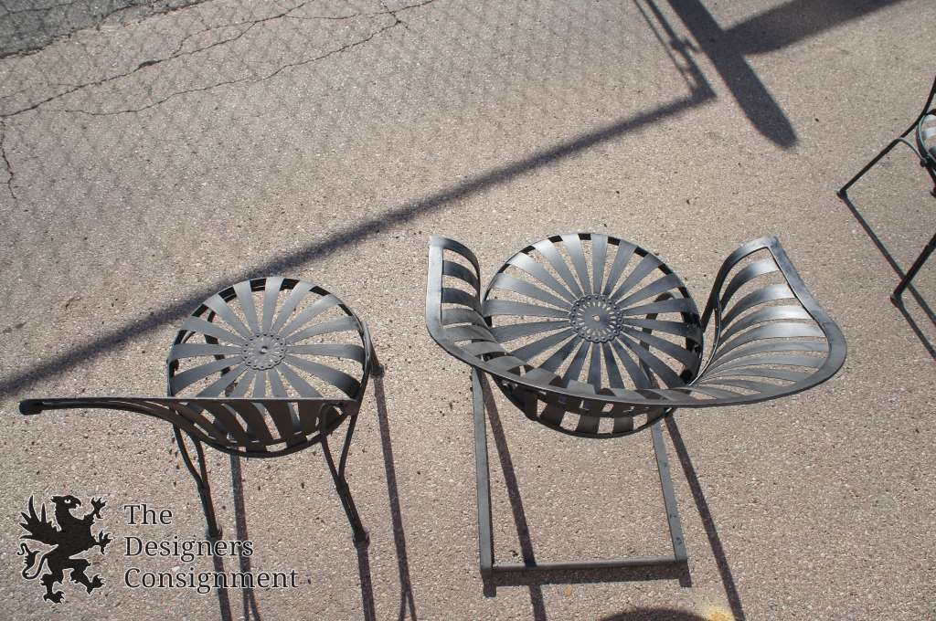 A neat set of 1940s steal sunburst chairs with slat backs.