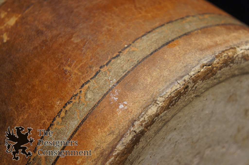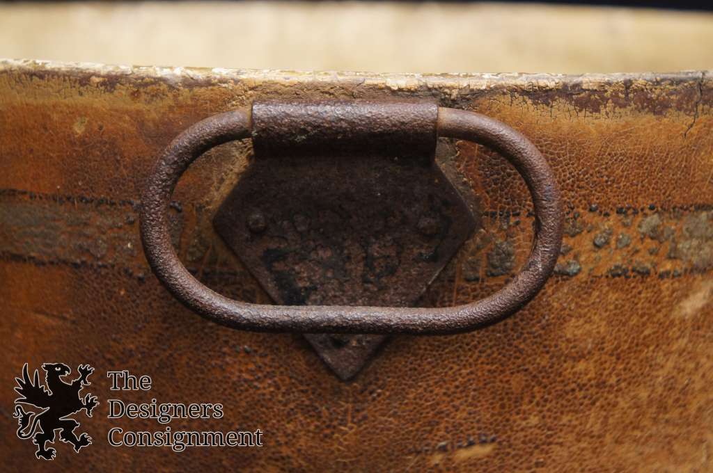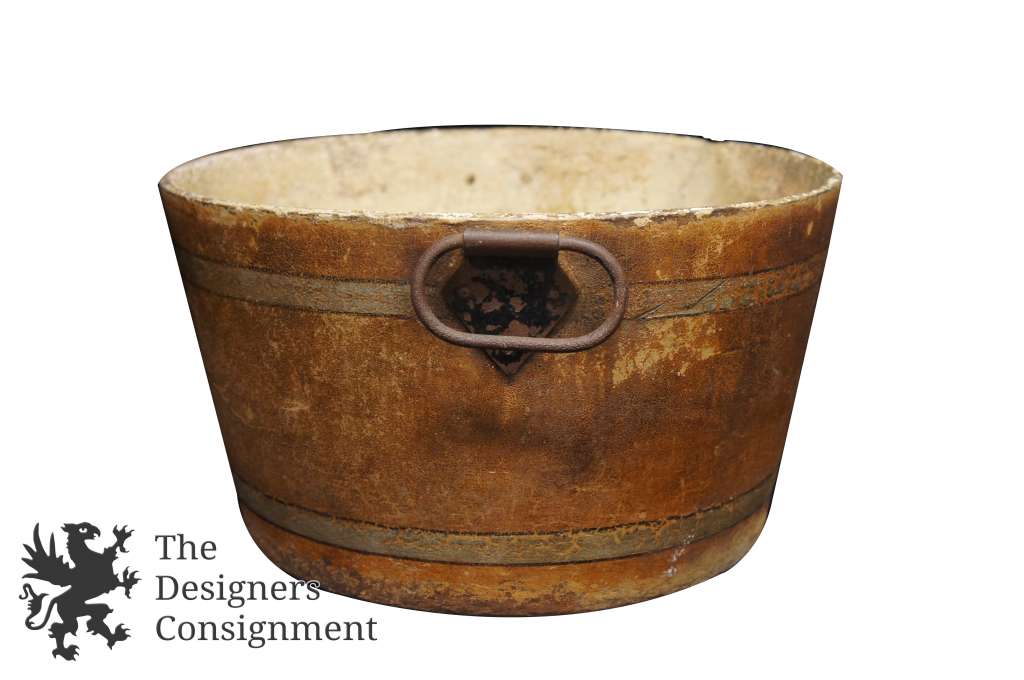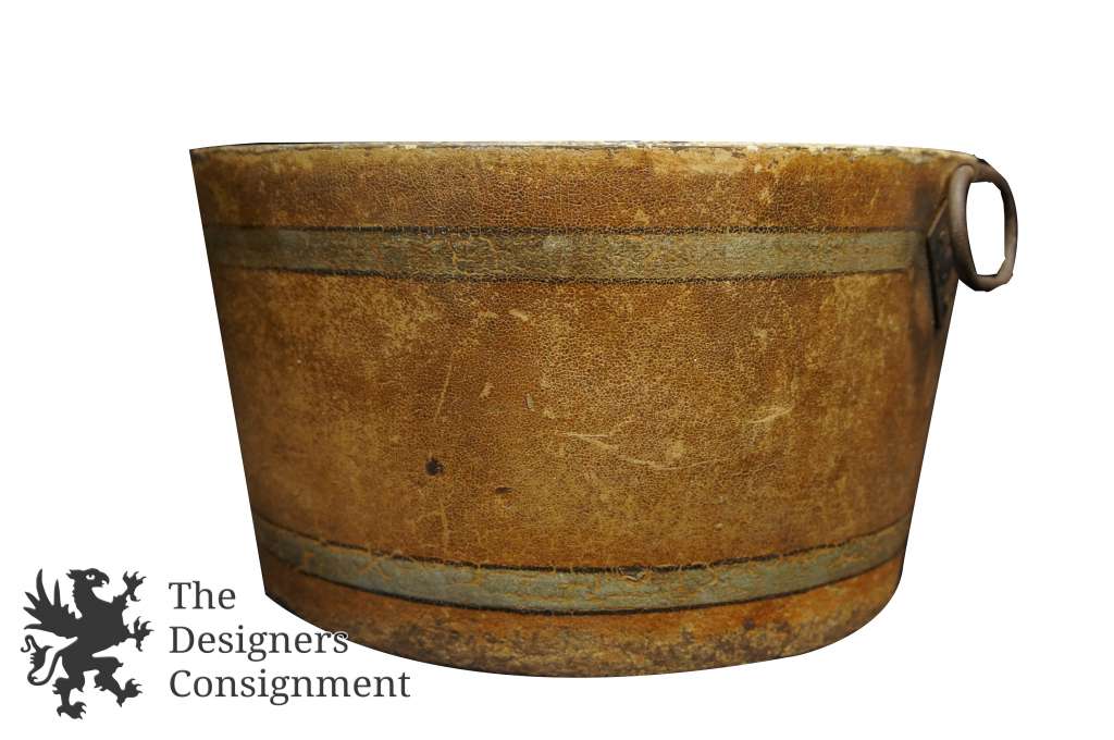 A beautiful composition and leather bucket with handles. Marked Germany with a compass stamp on the bottom.