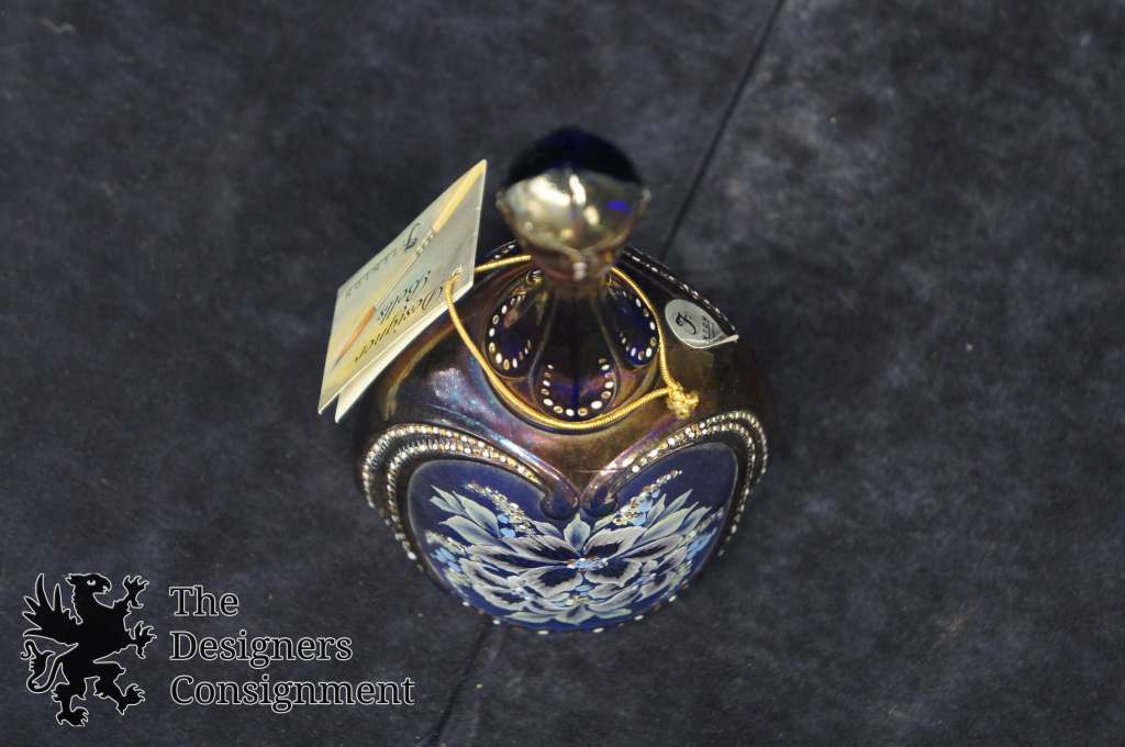 Vintage Fenton Designer Bell Glass Blue Hand Painted Floral Mark Reynolds 7