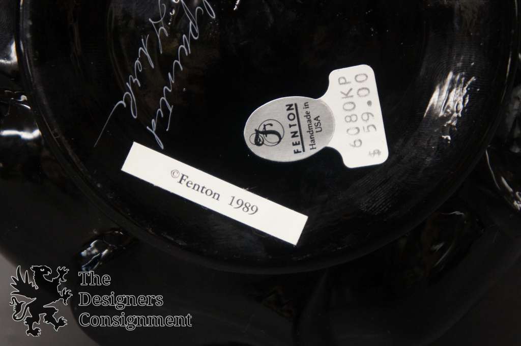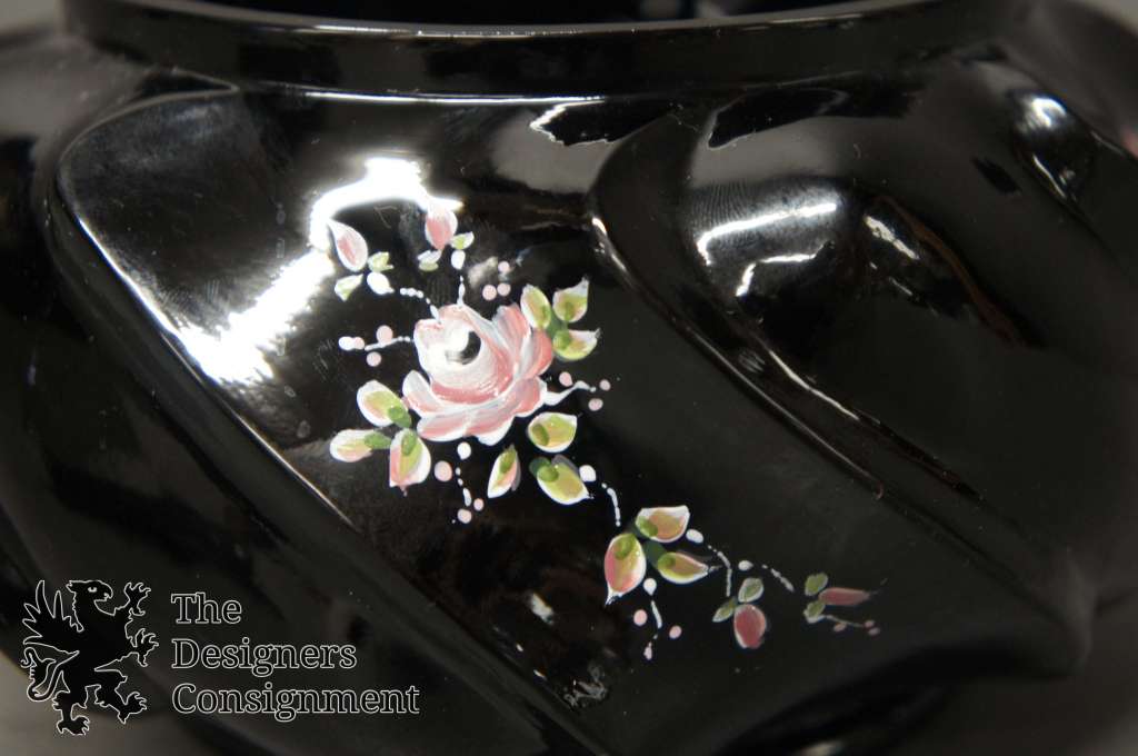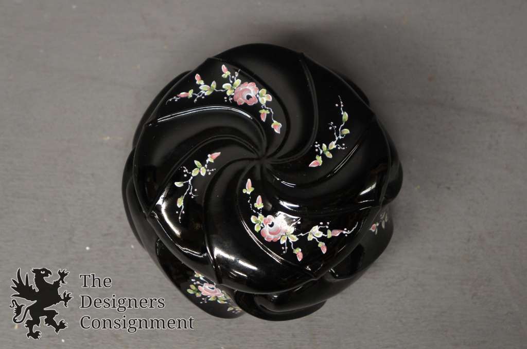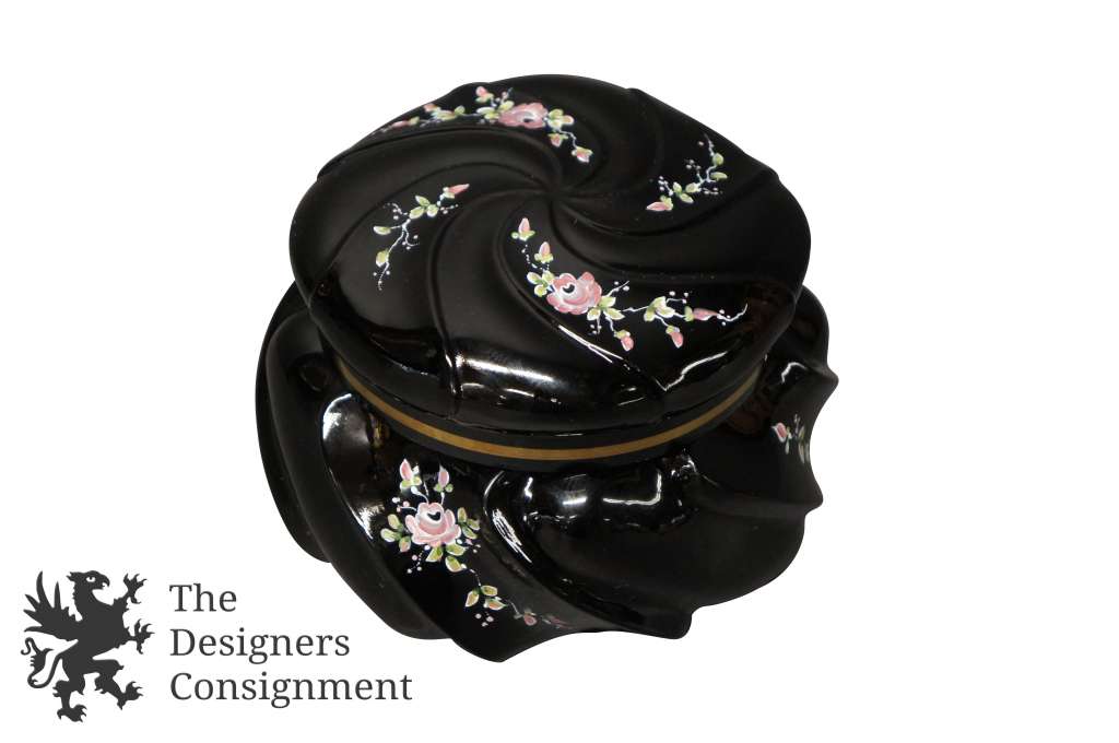 Fenton Glass Copper Rose Black Wavecrest Covered Candy Box Signed Hand Painted