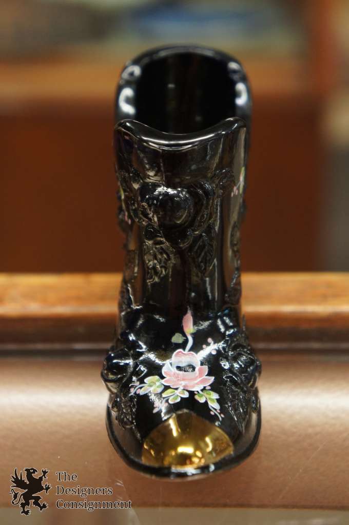 Vintage Fenton Hand Painted Copper Rose Victorian Boot Shoe Vase Roses Signed