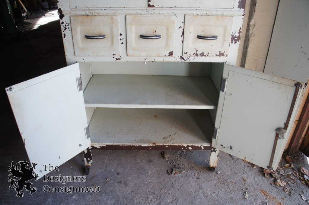 Gently Used - Heavy Paint/Finish Loss/ Yellowing/Rust; Dents/Scratches; Does Not Roll Well - Needs New Castors; No Key; No Shelves