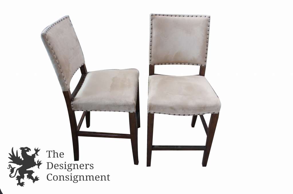 Beautifully upholstered in Italian leather or our soft Everydaysuede™, the Manchester brings distinguished style and supreme comfort to the bar. The deep seat cushion and gently pitched back are trimmed in antique-bronze nailheads, and the solid wood is finished by hand in a dark espresso.