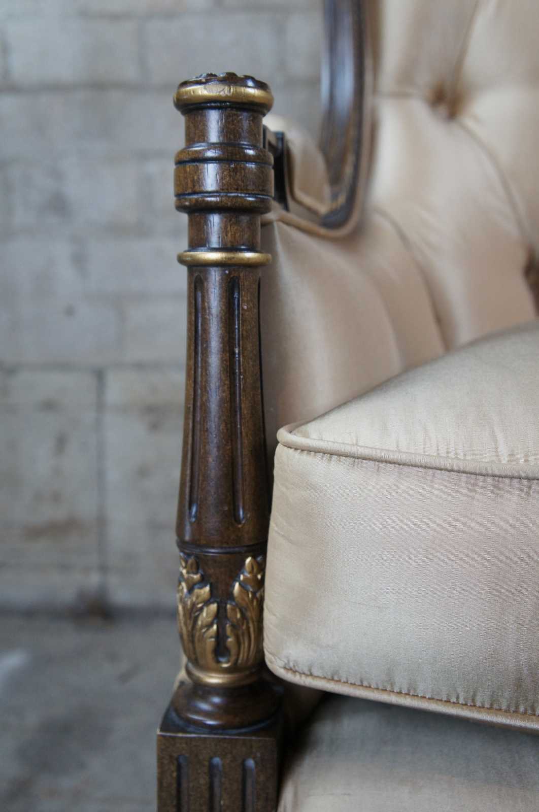Century Furniture Tufted Wing Back Chair. Classic Louis XV Styling with an intricately carved frame over reeded and tapered legs leading to arrow feet.