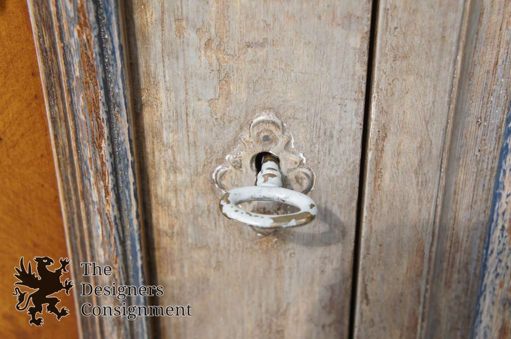 Good Condition - Light Scuffs; Artistically Distressed; Damage to Corner of One Interior Cabinet; Scratches on Shelves