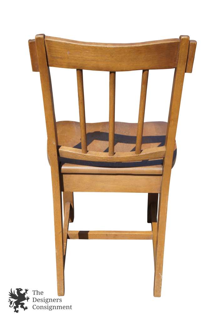 Vintage Oak School Teachers Desk Chair Seat Occasional Side Slat Back