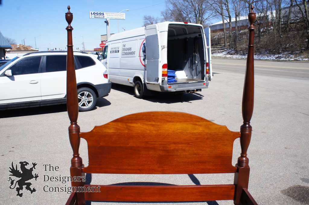A beautiful 4 poster solid Mahogany Bed by Craftique. Craftique was founded in 1946 by L.P. Best, who sold the company to Pulaski Furniture in 1988. This bed features turned post with carved accents leading to trophy finials. A great addition to any setting.