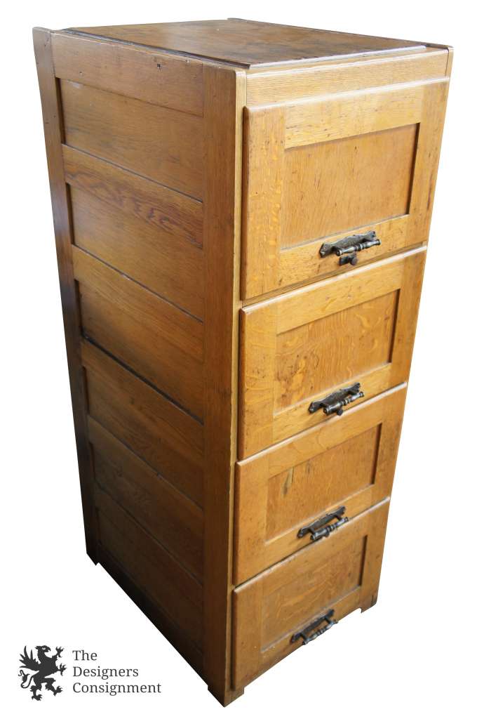 4 Drawer File Cabinet. Made from Oak with brass hardware. Interior is adjustable.