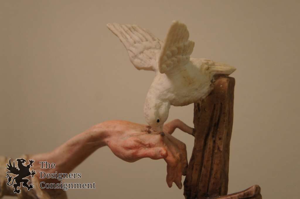 22" Giuseppe Armani Figurine Capodimonte Old Man Bench Feeding Bird Hobo Lunch