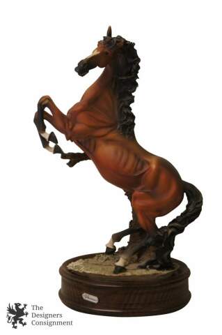 Vintage Giuseppe Armani Capodimonte Figurine Rearing Stallion Horse Brown Blaze