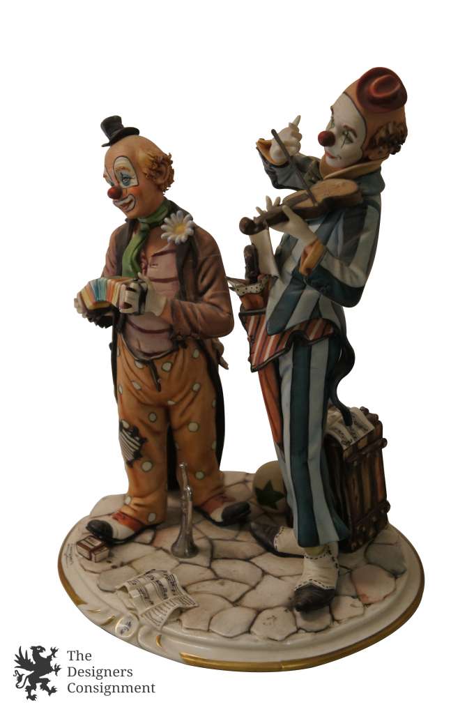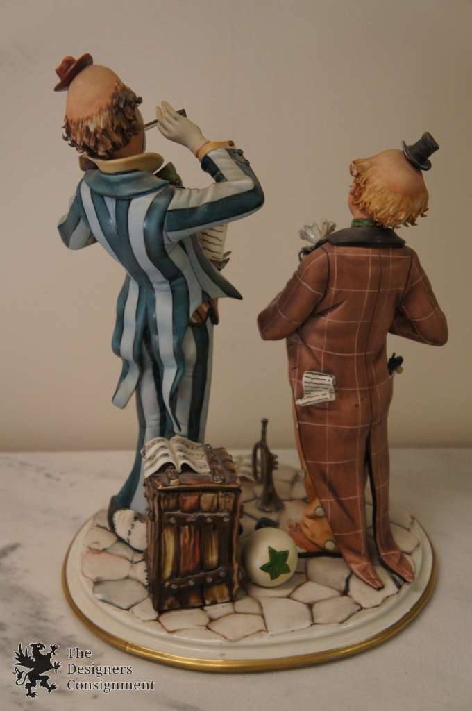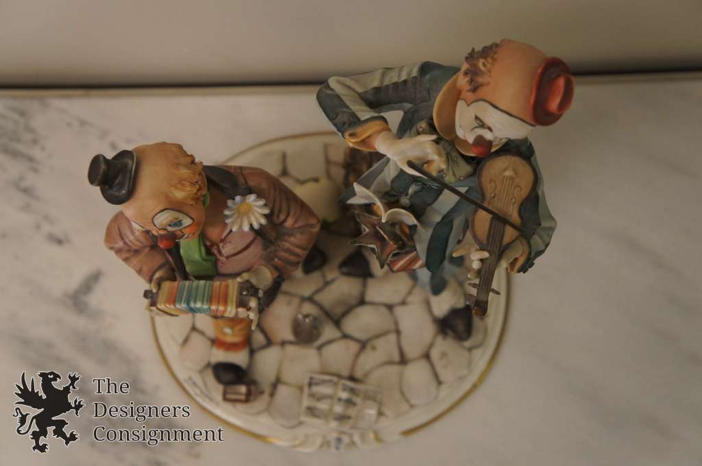An exquisite figure depicting two clowns playing music. The perfect display piece for any setting.