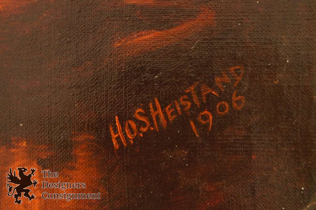 H.O.S Heistand Antique Oil Canvas Portrait Signed 1906 Victorian Woman Red Dress