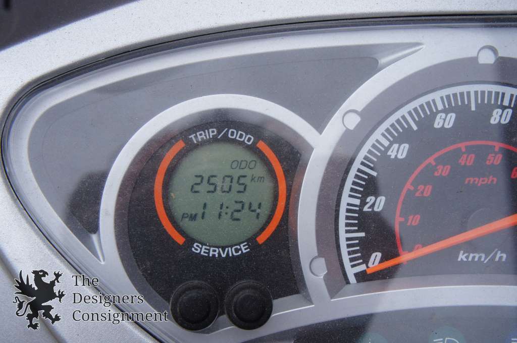 This scooter is in good condition. Battery was recently replaced. The carburetor is currently screwed in tight to keep at high idle. Could be cleaned to release tension and lower idle. Scooter is on trickle charge. 2505 Km or 1556 Miles driven. Scooter has 1 original owner. title was transferredto us for resale.