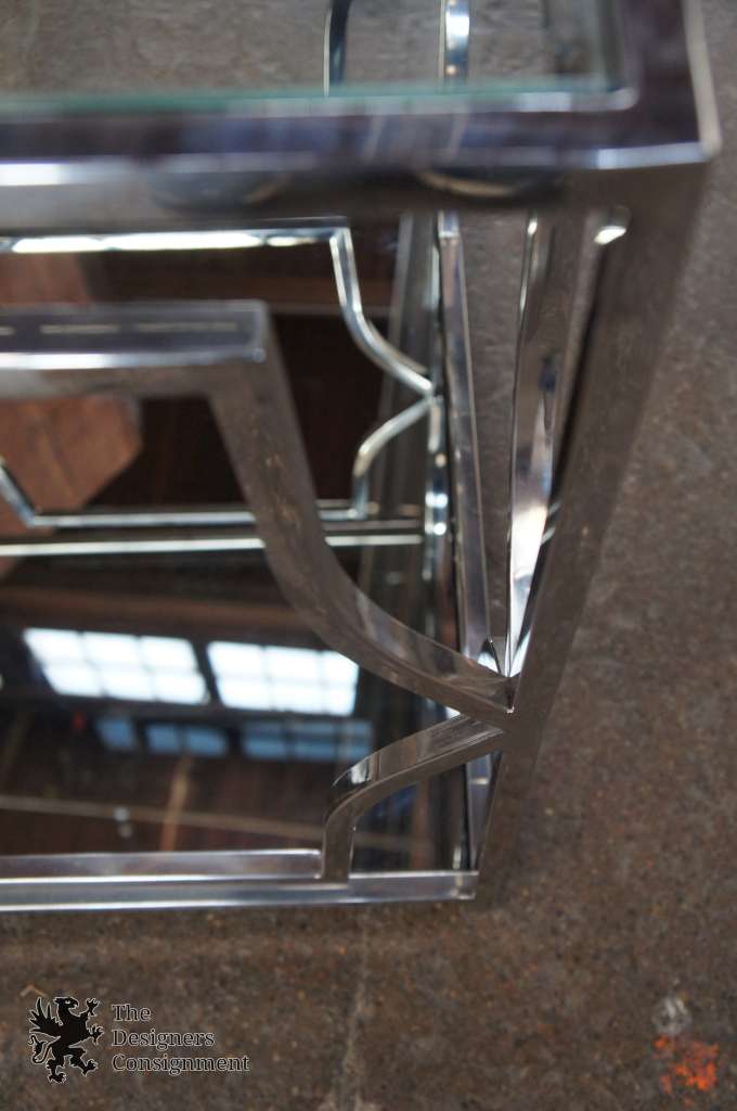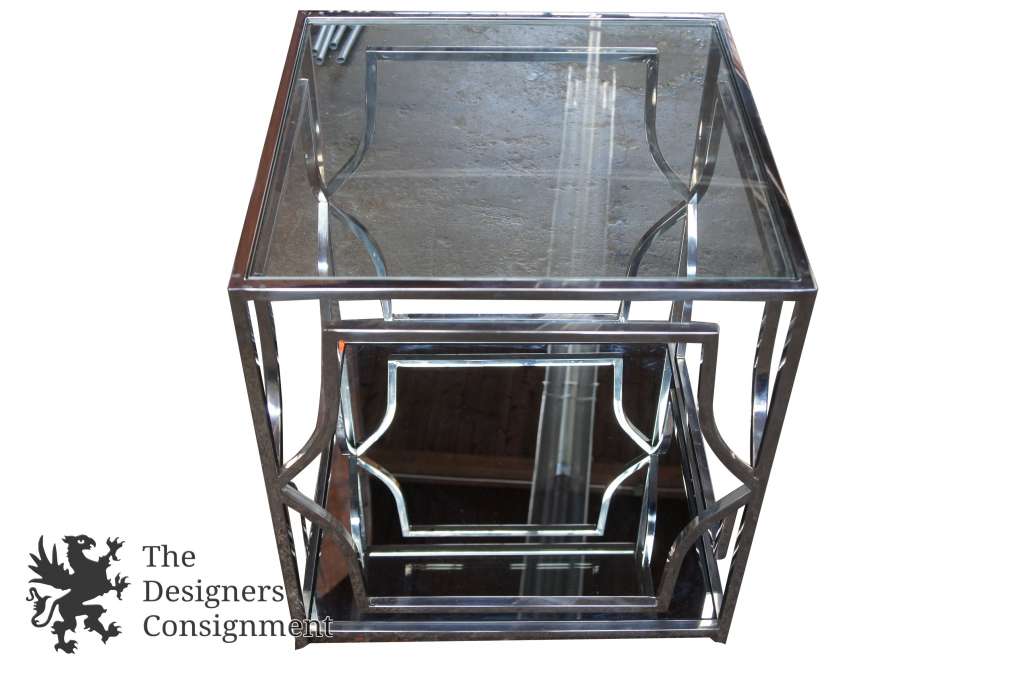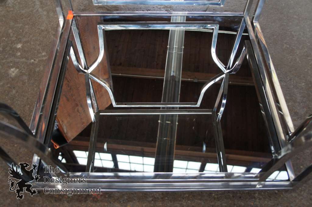 Z Gallerie Abigail End Table Contemporary Chrome Frame W/ Mirror & Glass 22"