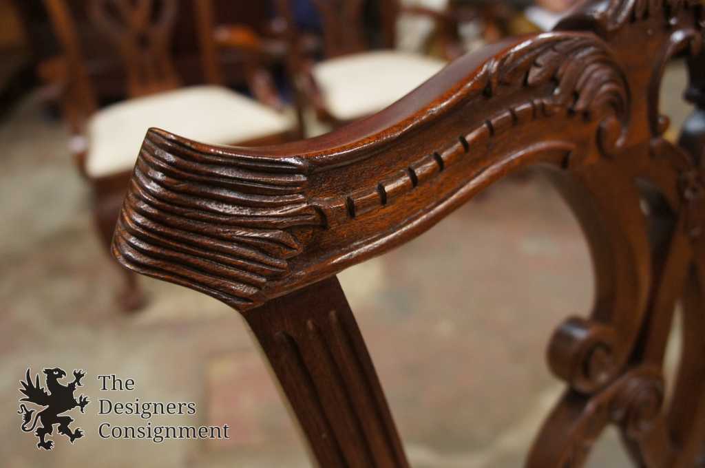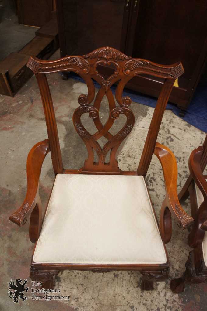 Abeautifulset of Stanley Furniture Stoneleigh Anniversary Chairs. Made from Mahogany in Chippendale Styling. Carved throughout with a scalloped back and ball and claw feet.