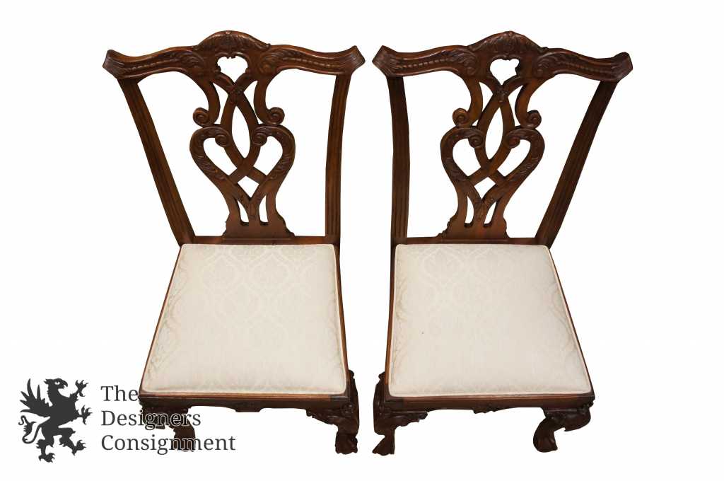 A beautifulset of Stanley Furniture Stoneleigh Anniversary Chairs. Made from Mahogany in Chippendale Styling. Carved throughout with a scalloped back and ball and claw feet.