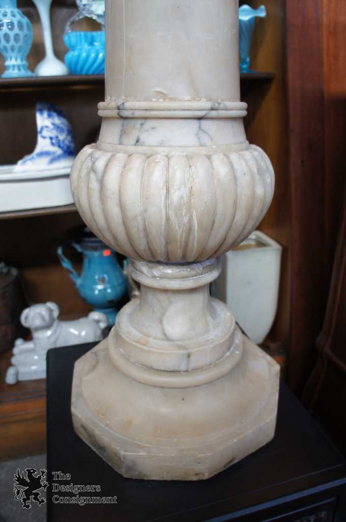 Antique 19th Century Alabaster Pedestal. This is an overall gorgeous piece with meticulous detail. The base is octagonal shaped leading to a fluted central area that elongates towards a flared top. A very heavy piece made to stand through the test of time.