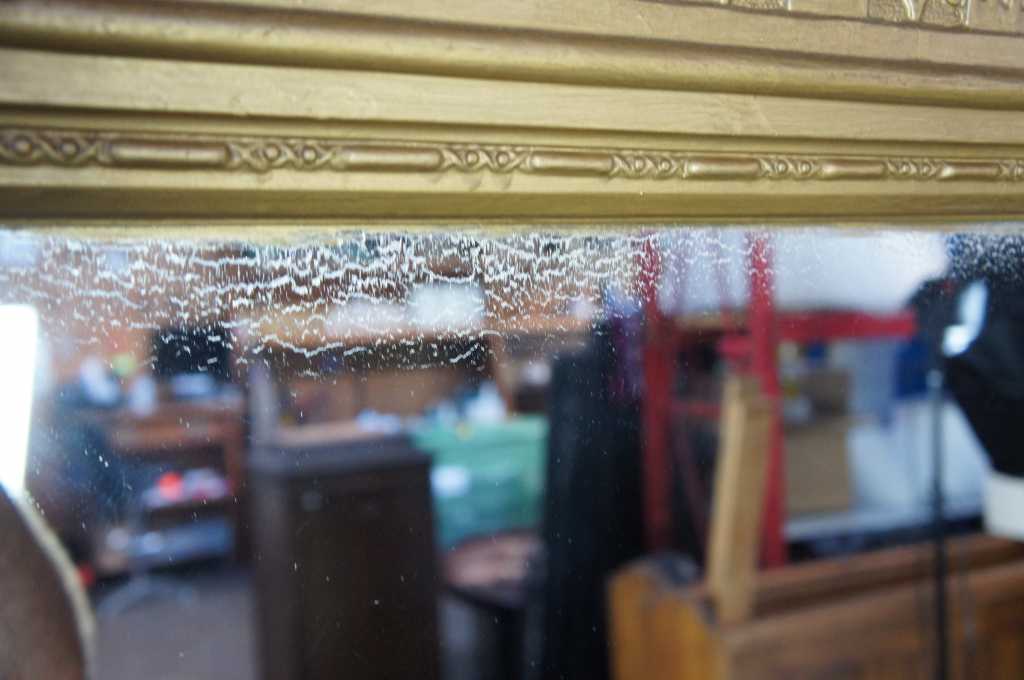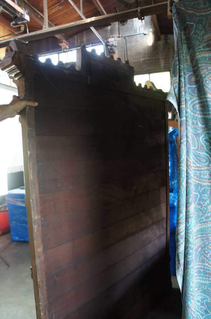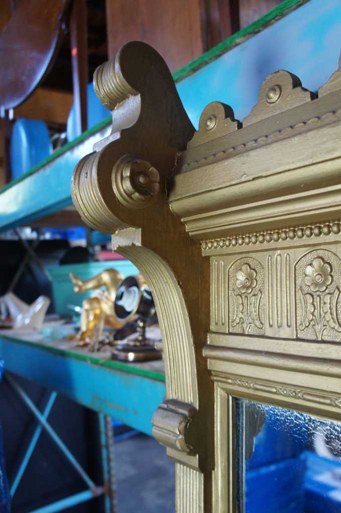 A massive 19th century Eastlake pier mirror with stand. This mirror was made from walnut and later painted gold. The gold could be stripped to bring back the original patina.