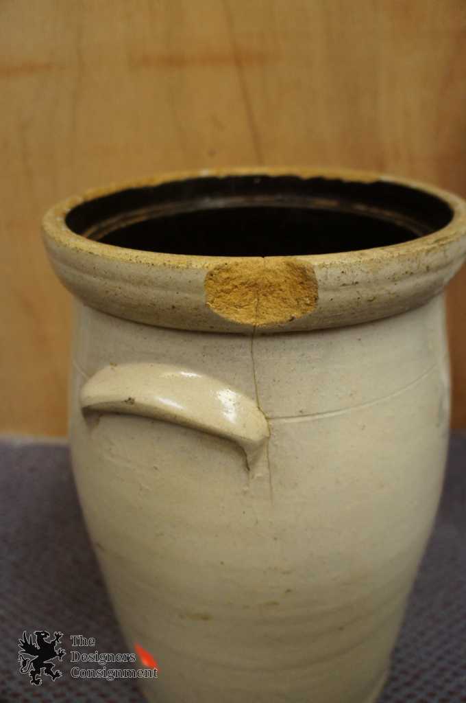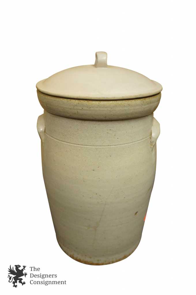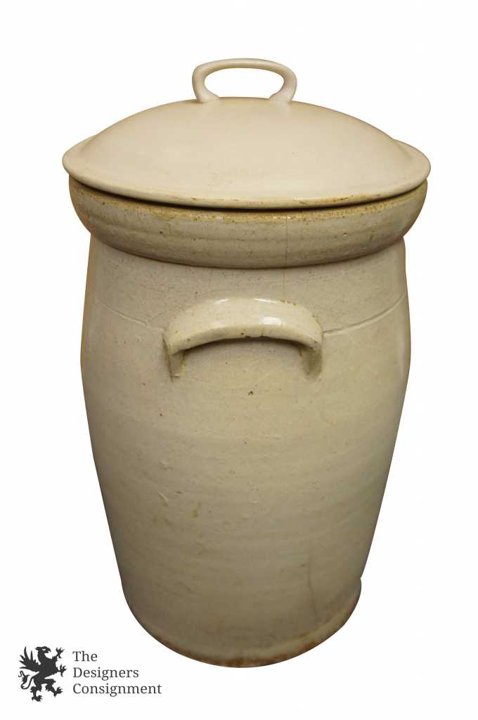 Antique 4 Gallon Lidded Crock Ceramic Earthenware White with Handles Container 222925349431