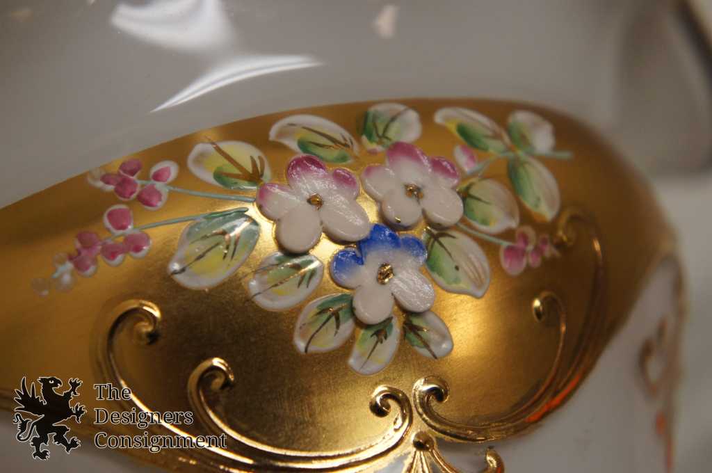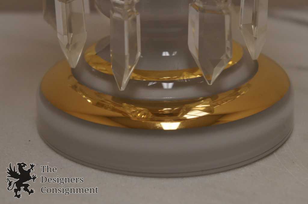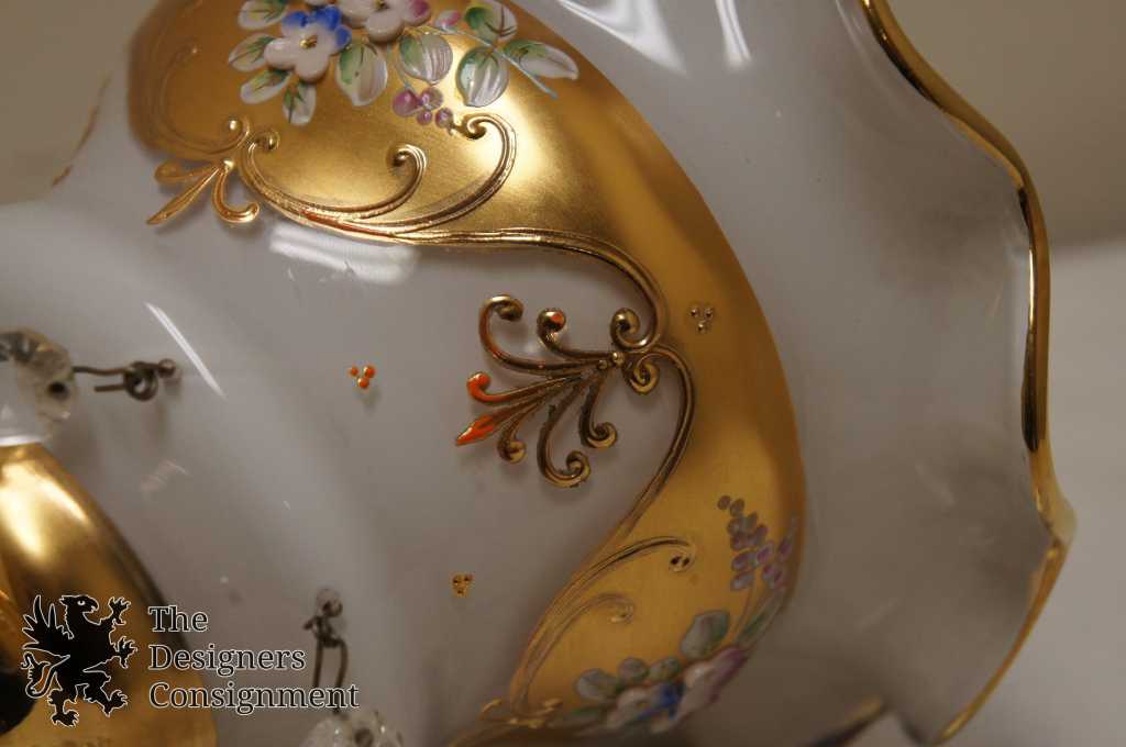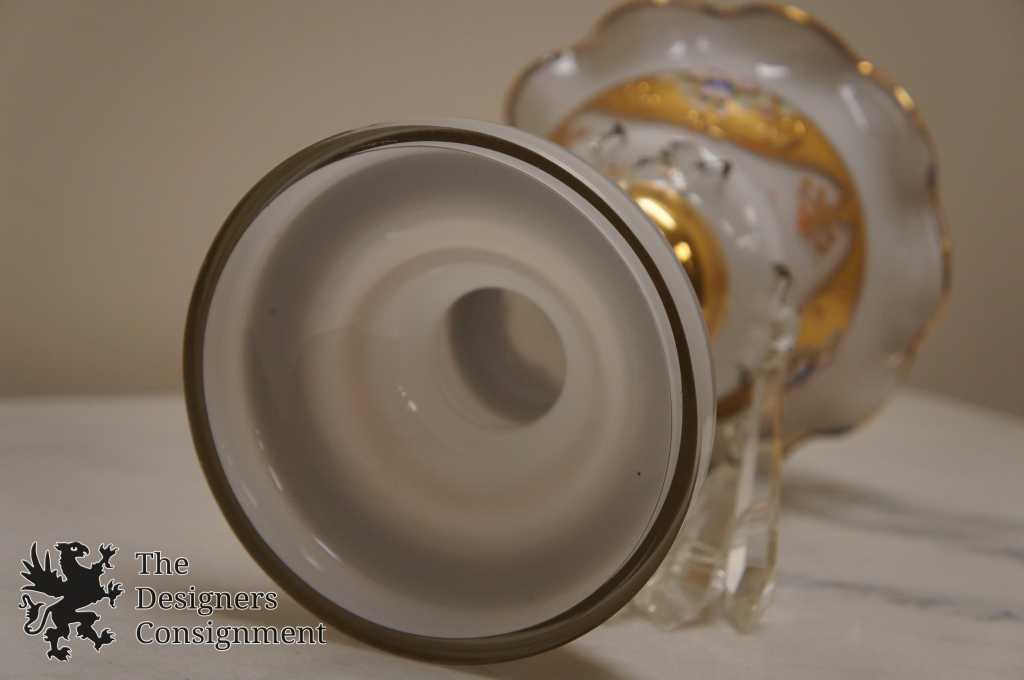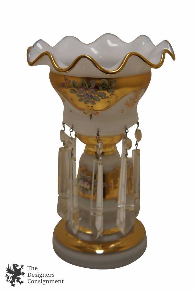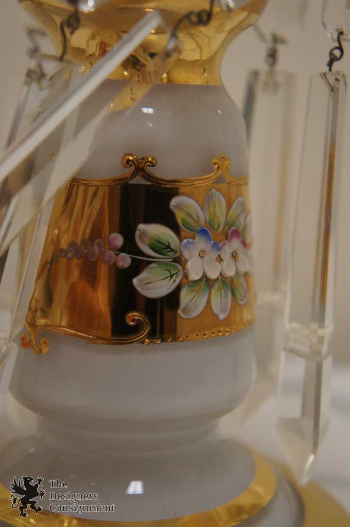 Milk Glass Mantel Vase or candle holder with branched drop crystals. Hand painted gold and floral detail. A great addition to any collection.