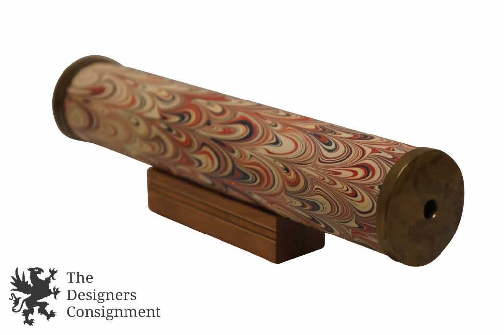 Vtg Kaleidoscope Van Cort Instrument Makers L'Optique & Wood Stand Marbled Body