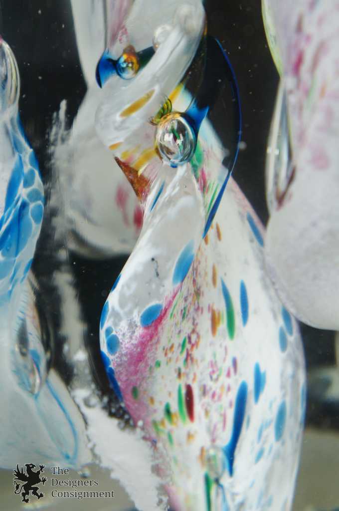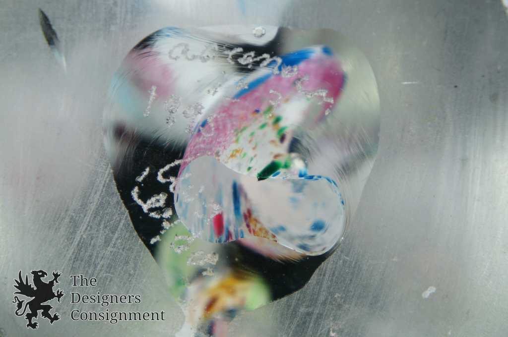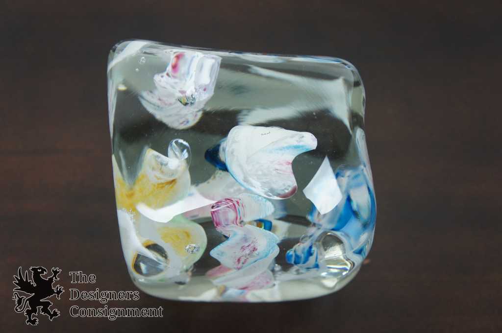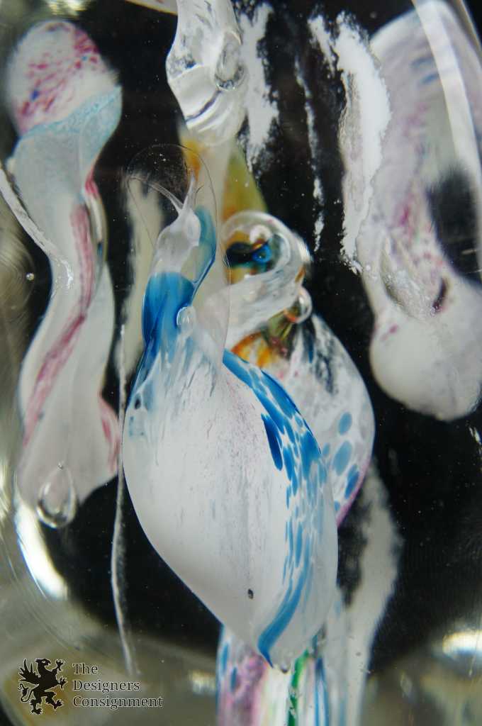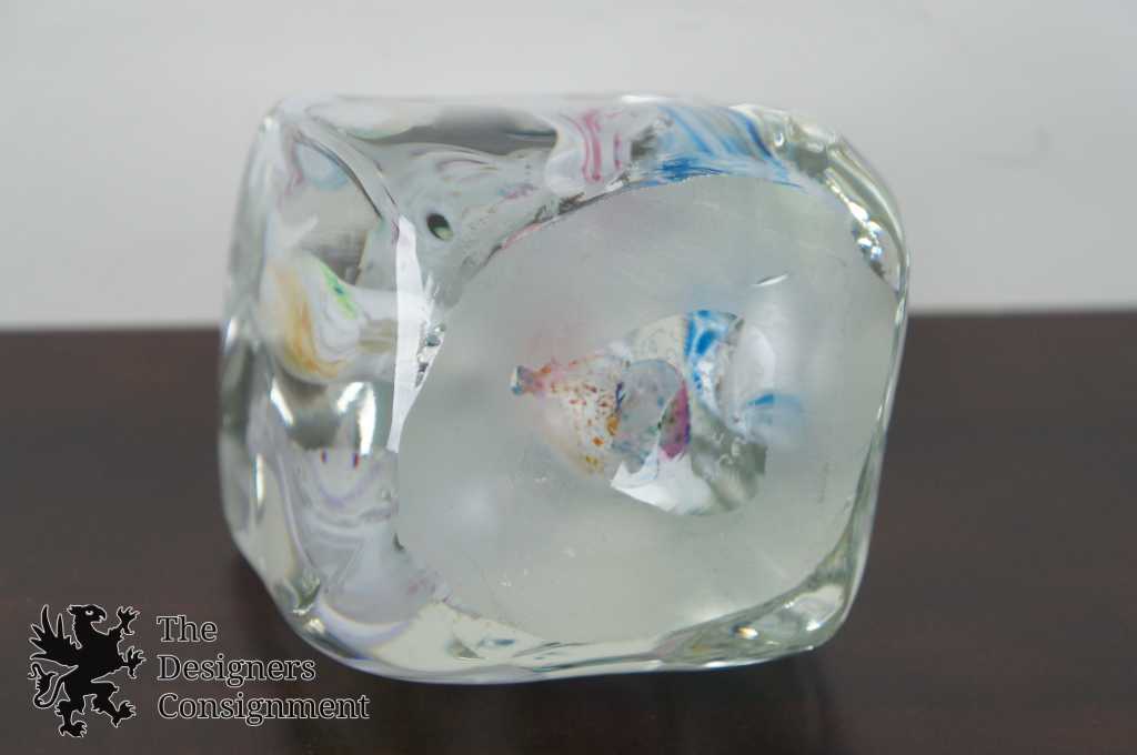 Heavy 7" Signed Art Glass Paperweight Multicolor Suspended Swirls Shapes