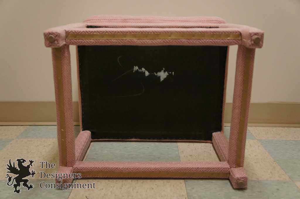Scene II Footstools by Henredon. Circa 1980s. Pink Upholstery with geometric pattern. When Henredon made these they were generally used to tuck under a sofa table.