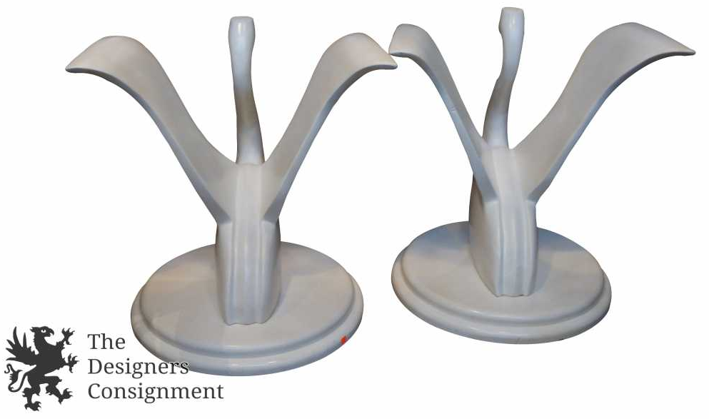 A magnificent pair of swan table bases that could be used as a pair for a larger dining table or separately as side tables. Nicely weighted with beautiful detail. Appears to made from fiberglass.