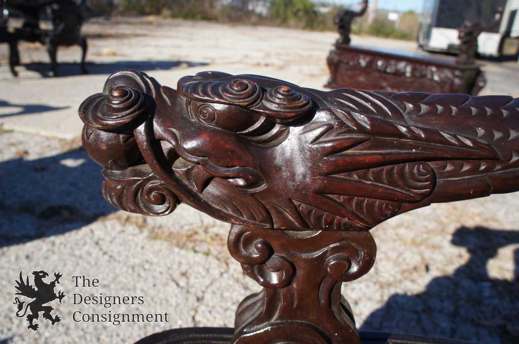 Early 20th century Chinese arm chair. Made from from Rosewood in a deep brown and elaborately carved in high relief with a pierced back featuring coiling dragons, curved arms and dragon legs. Back panel shows a swooping Phoenix. An overall exceptionally detailed piece that will make a wonderful addition to your collection.